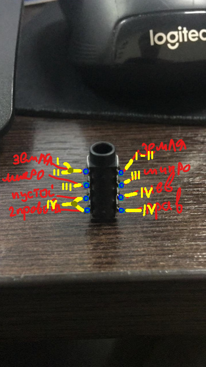 у меня есть разъем на 4 пина, выглядит так. то есть я получается запаиваю его по такой схеме и по идее слышу гудок? микрофон подбираю методом тыка? нашел схему для гарнитуры, у меня точно такой же провод, меня смущает сопротивление в 500 ом которое тут нарисовано, я скину эту картинку вторым ответом, не пойму как две прикрепить.