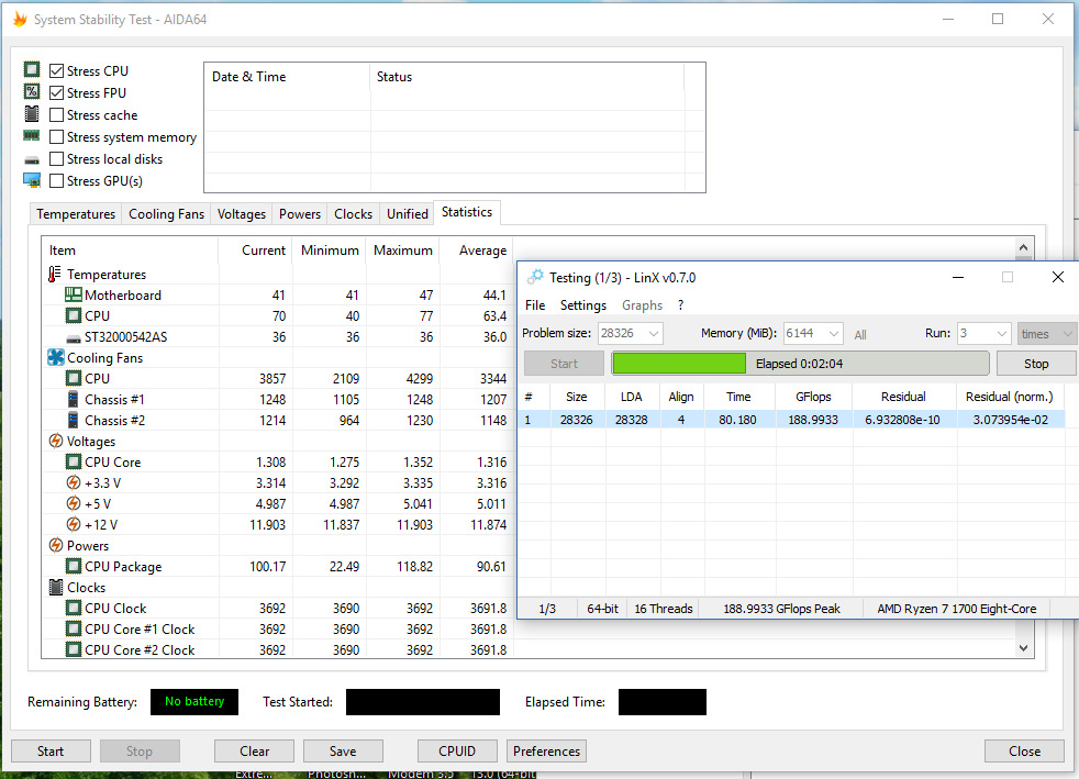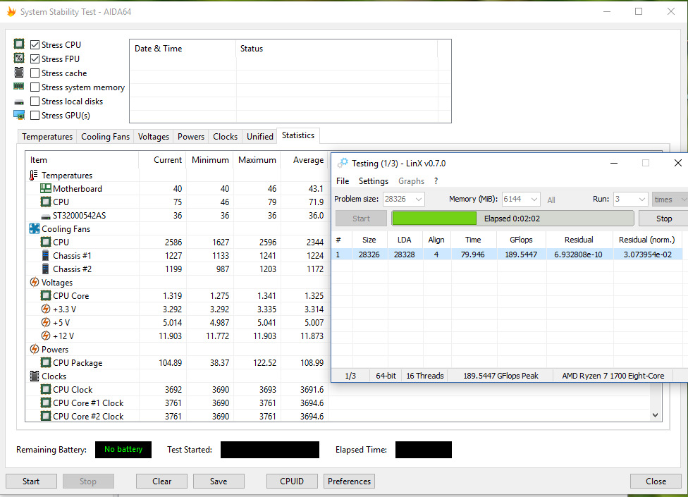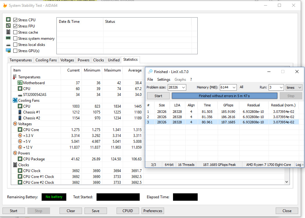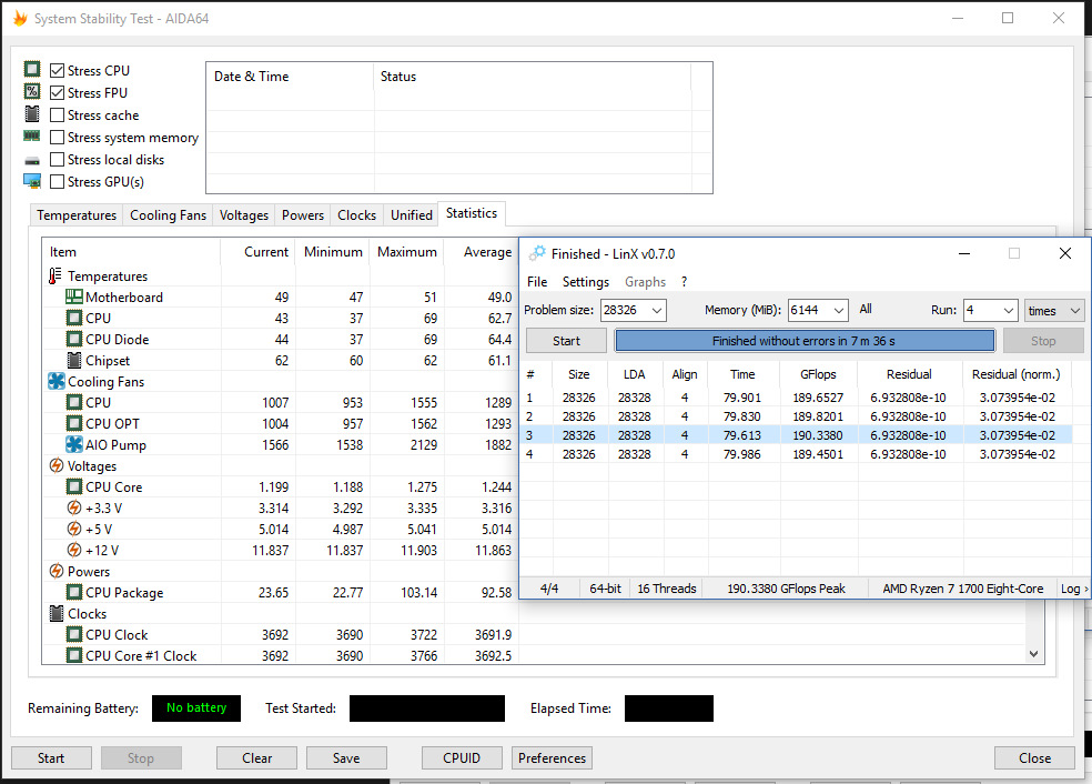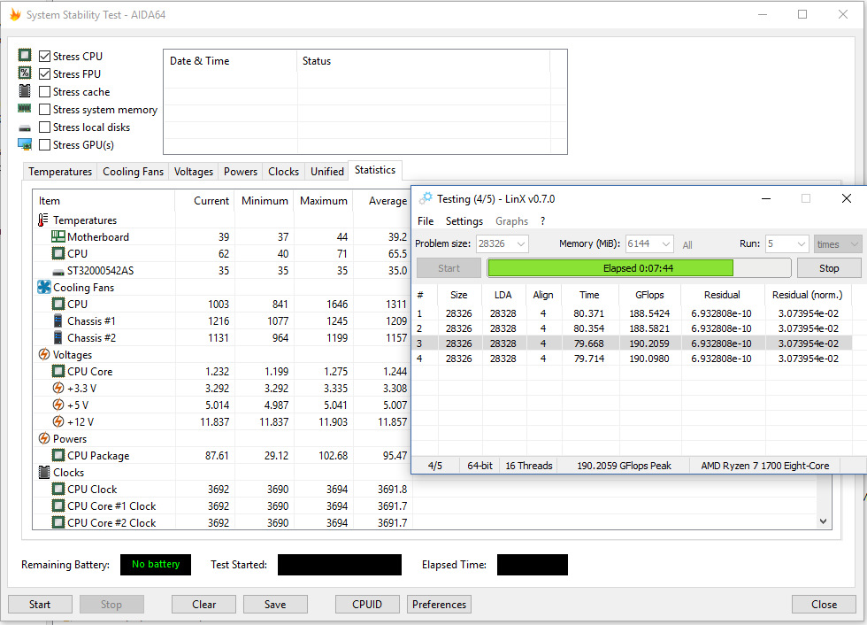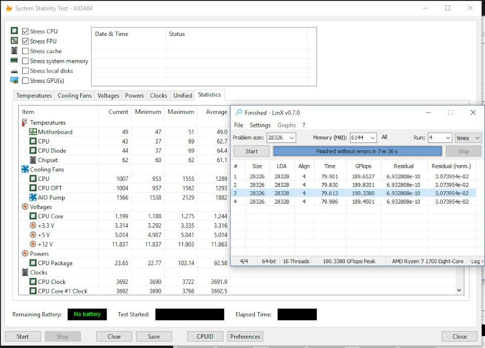 Аналогично предыдущему, однако хитрый человек купил ОЕМ процессор без коробки, так дешевле, и на вырученные ~1,5р купил «простую» башню на трех трубках, или достал старую башню от прошлого ПК. Обычно, такие башни, готовы рассеять около 130 ватт тепла, и уже можно подразогнать камень, погонять linX.