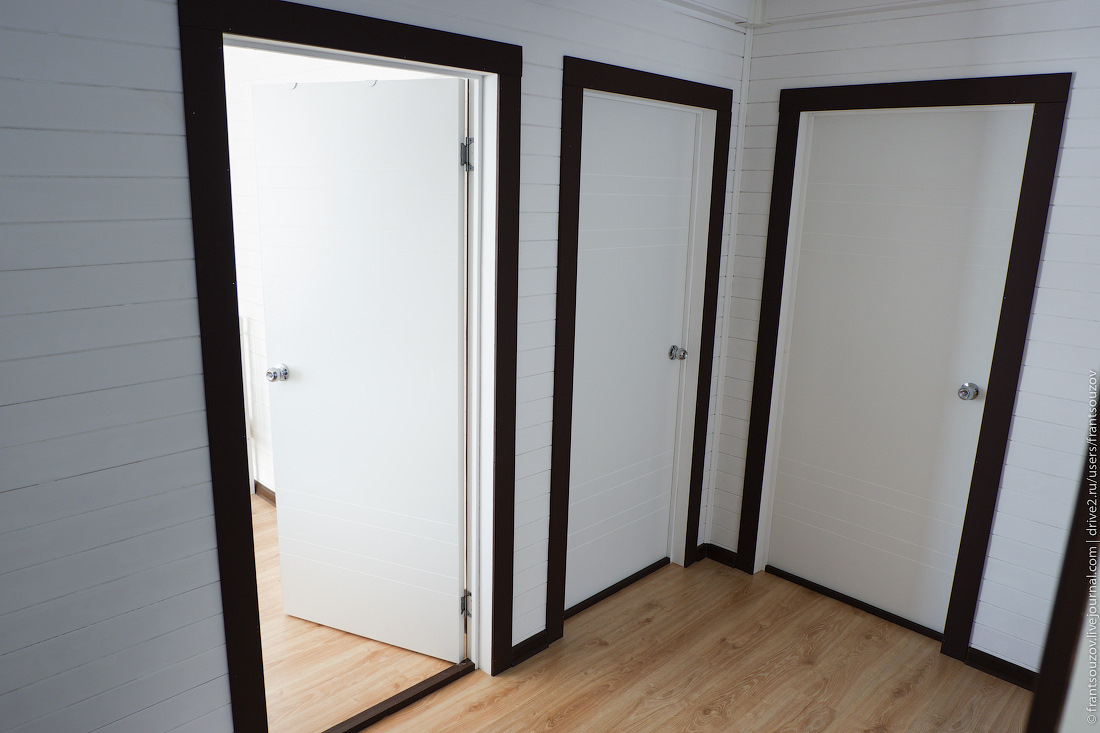 Ну и ещё один момент. В нескольких местах на первом этаже чувствовалось, как холодных воздух тянет по полу. Опытным путём выяснил, что дует именно на стыке стена-пол, причём не везде. Видимо, в тех местах строители не положили пароизоляцию внахлёст. Вот так вот старался всё проверять, дежурил в доме целыми днями во время строительства, но в итоге всё равно что-то упустил. Решилось банальной регулировкой плинтуса — пришлось опустить его ниже на пару миллиметров, чтобы он плотнее прилегал к полу и стене, после чего дуть перестало. Так-то для самого деревянного дома лишнее движение воздуха — это хорошо, но жильцам при этом не очень комфортно. Ну да ладно, это всё мелочи. Благо что, повторюсь, пока все недочёты устранял обычной отвёрткой.
