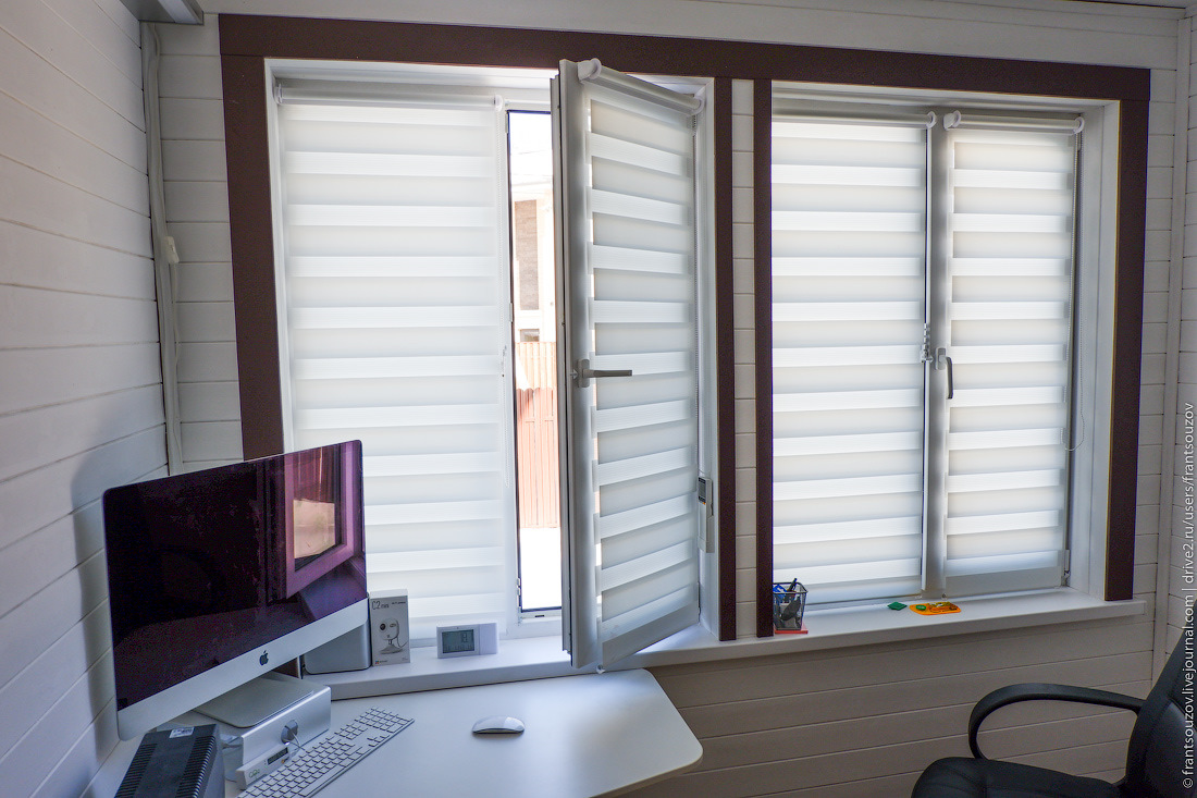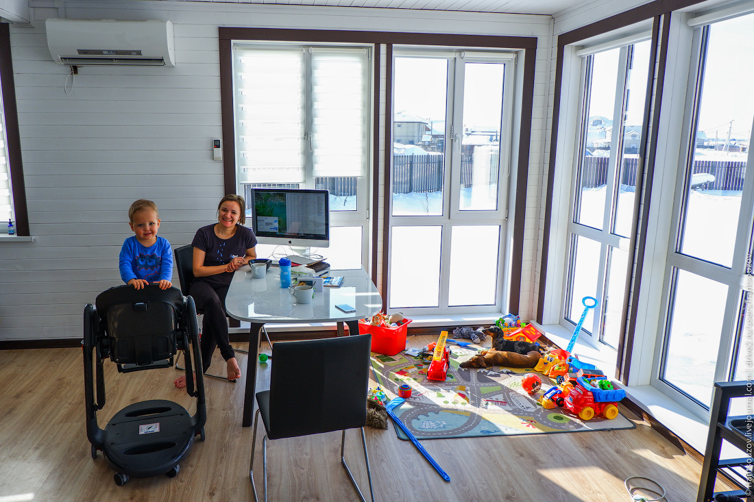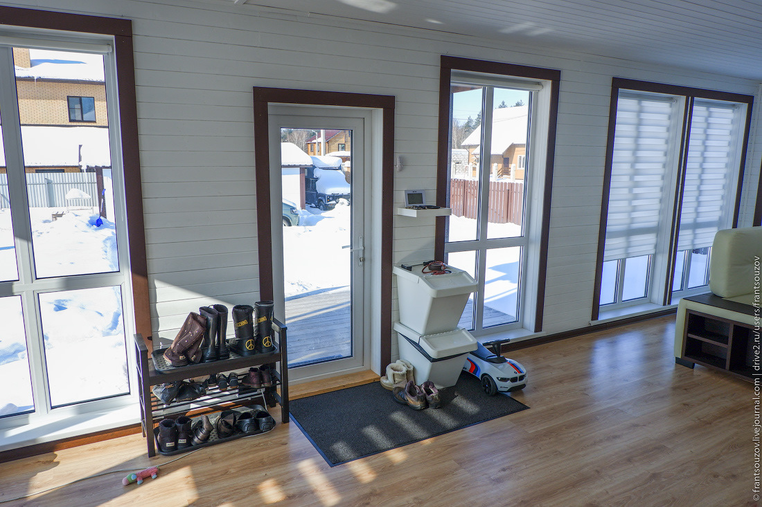 2. Когда-то ещё в школе я читал статью про то, как одна жительница тёплой Бразилии построила себе дом со стеклянными стенами, и все её соседи каждый день собирались посмотреть на то, как она живёт. Помню свою мысль после прочтения: "ведь есть же люди, у которых определённо с головой не в порядке!". Проходит два десятка лет — и вот мы с семьёй переезжаем в дом с панорамным остеклением! Правда, толп соседей возле окон не наблюдается. Ну так ведь и я — не знойная бразильянка… :)))