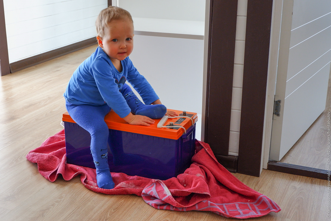 19. За прошедший год электричество отключали два раза, второй раз был две недели назад, случилась какая-то авария и обесточилось много населённых пунктов в Домодедовском районе. Ну а тут пару дней назад на Драйве увидел объявление о продаже гелевых аккумуляторов ёмкостью в 200Ач по ооочень вкусной цене… В общем, не удержался, и сегодня в два часа ночи с трудом затащил один домой (60 килограммов, как-никак, от машины пришлось тащить по снегу). Пока ещё не знаю, зачем он мне, но в хозяйстве точно пригодится. Тем более, в домике всегда определённо есть что делать!