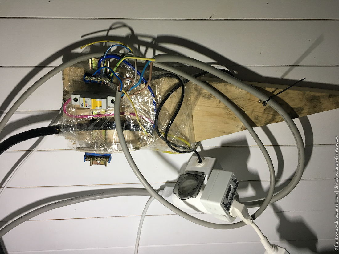 Хочешь вскипятить чайник? Будь добр, выключи сперва водонагреватель. Собрался спать? Выключи обогрев кабинета и включи кондиционер в спальне. Иначе через несколько минут единственный автомат вырубится… В феврале прошлого года я наконец-то раскидал проводку к потребителям, собрал нормальный щит и перевёл дом на три фазы. Ну и как результат, выяснилось, что 5кВт вполне достаточно для обогрева нашего домика! :)