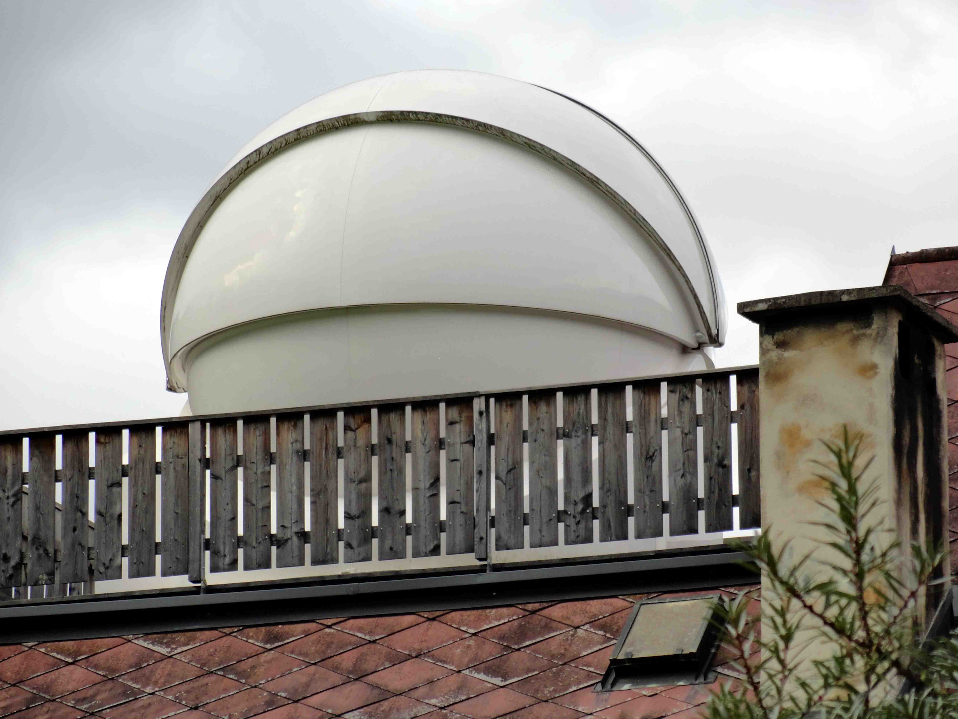 На фото заснят оптический концентратор — нагреватель в виде параболичекого зеркала 3,5 м в диаметре, правда в закрытом состоянии. В солнечный день, говоррил хозяин, 300Вт насос вполне справляется с прокачкой воды серез теплооменник 0,5м2 в центре заркала.