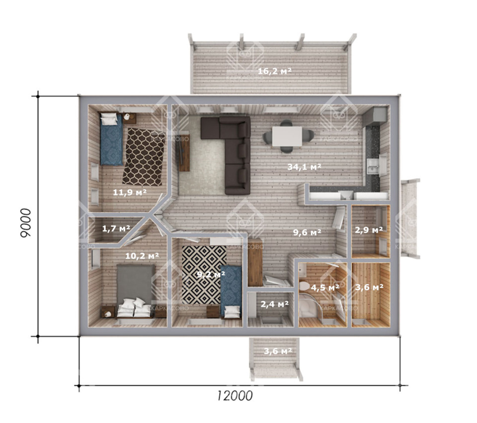Не очень представляю, как это реализовать в каркасном доме.
