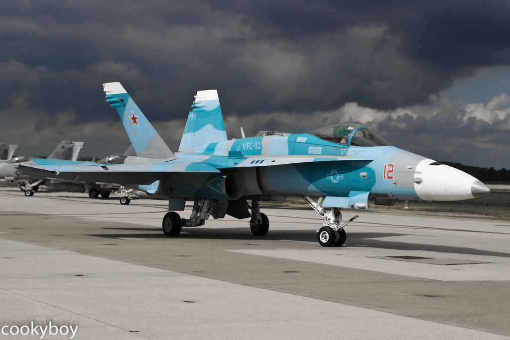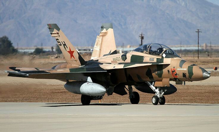Поступившие на вооружение «агрессоров» в 90-е годы «Хорнеты» были окрашены в серо-голубой цвет под Су-27 и МиГ-29 или пустынный желто-коричневый, также предпринята попытка визуально исказить форму самолетов, чтобы они на больших расстояниях воспринимались как советские истребители.Впервые этот прием был применен еще в конце 60-х годов на «Скайхоках», изображавших вьетнамские МиГи-17.
