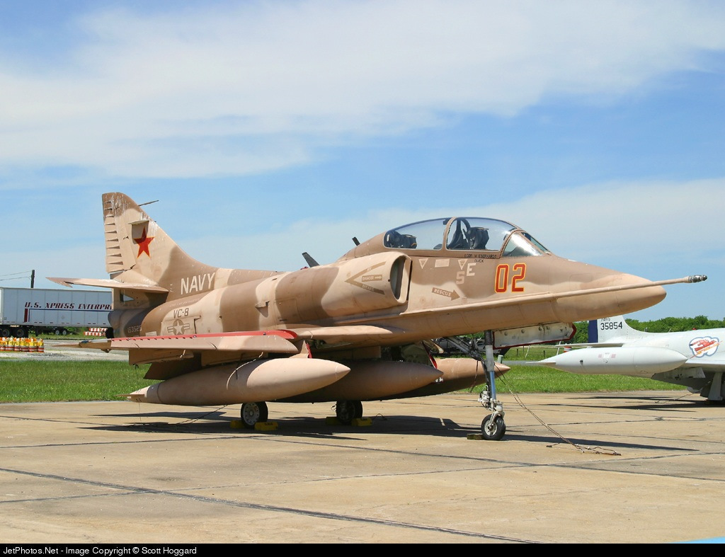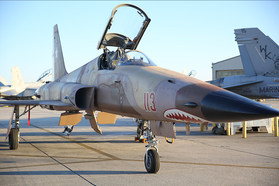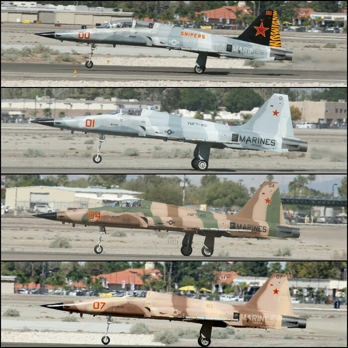 Самолеты же должны были даже внешне походить на МиГ-21. Таких машин в США нашлось всего две — штурмовик А-4 «Скайхок» и истребитель F-5 «Тайгер». Наиболее популярным «агрессором» стал F-5. Но пока шла война в Индокитае, истребители этого типа направлялись прежде всего в ВВС Южного Вьетнама. «Агрессорам» пришлось довольствоваться двухместными учебно-тренировочными Т-38, которые имели схожие с F-5 конструкцию и характеристики.