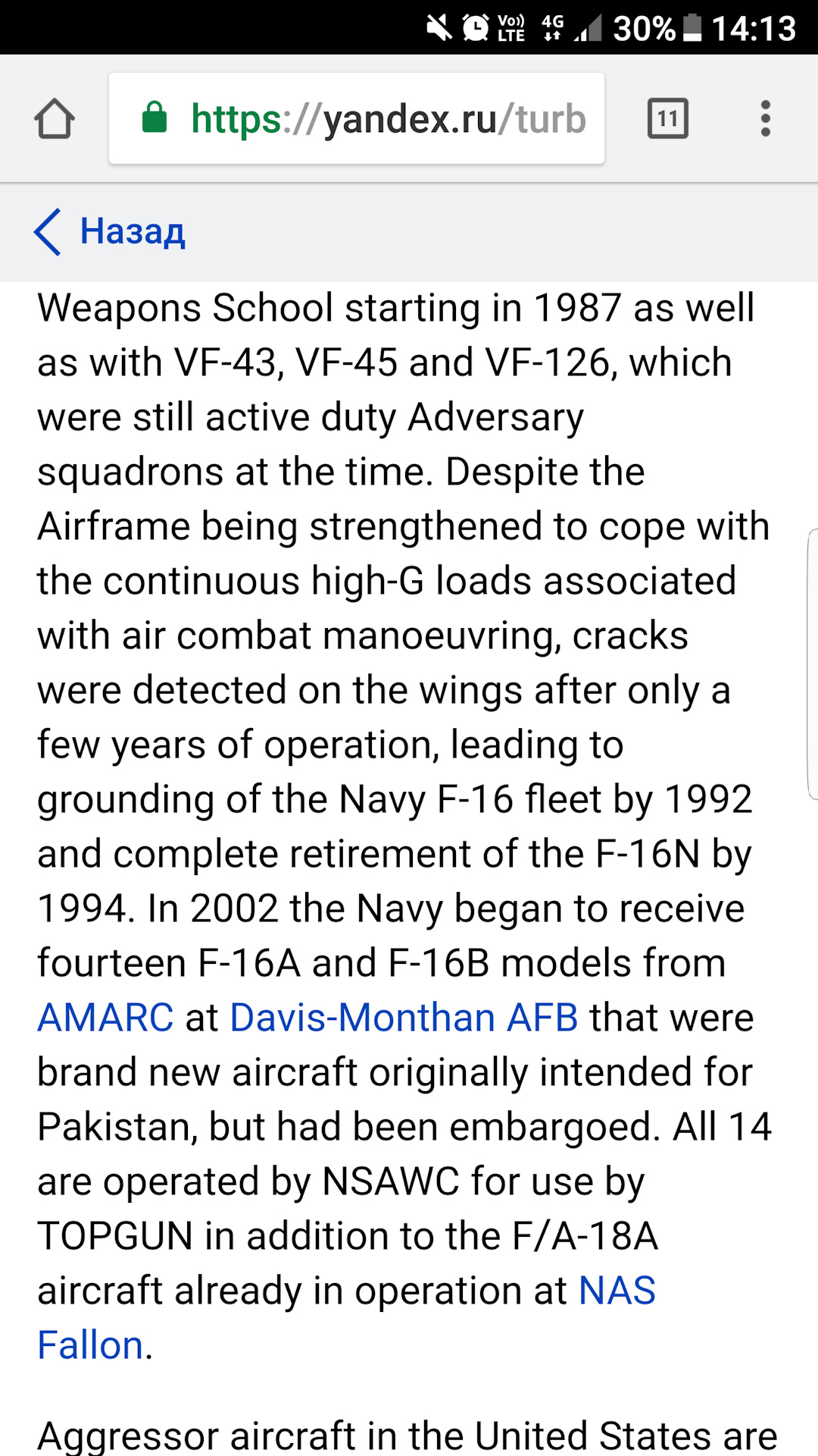Исходя из текста получается, что с 94го года Ф-16 у флотских нет.
