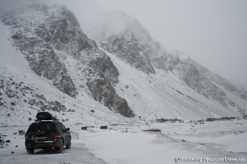 Легковушки без цепей в сложных погодных условиях могут не пропустить. Будьте готовы. Купите цепи на ведущие колеса заранее, иначе придется покупать их перед перевалом за 7-8 тыс. руб. К нам подходили люди и предлагали. В Степанцминде цепи стоят дешевле, около 5 тыс рублей.