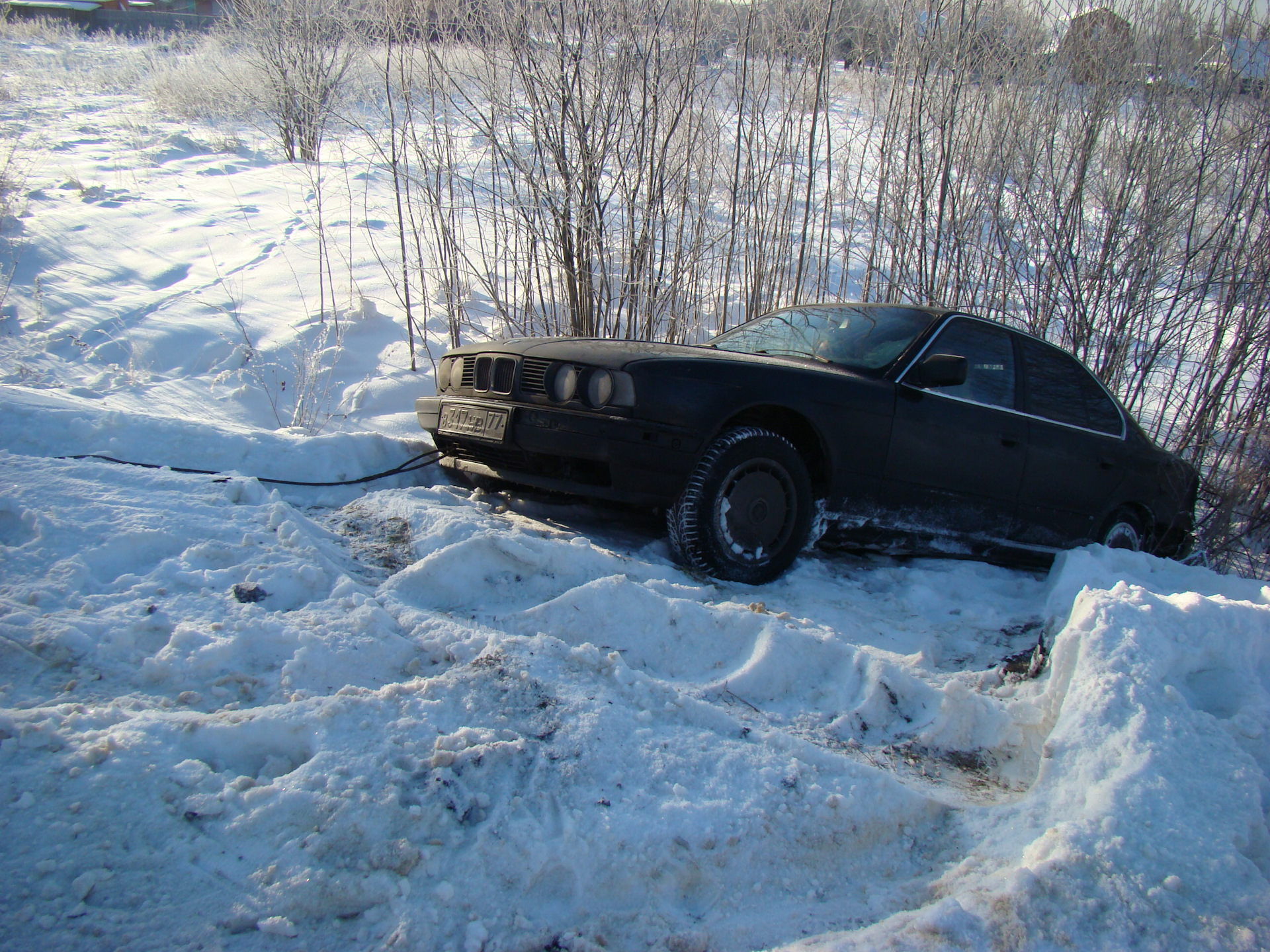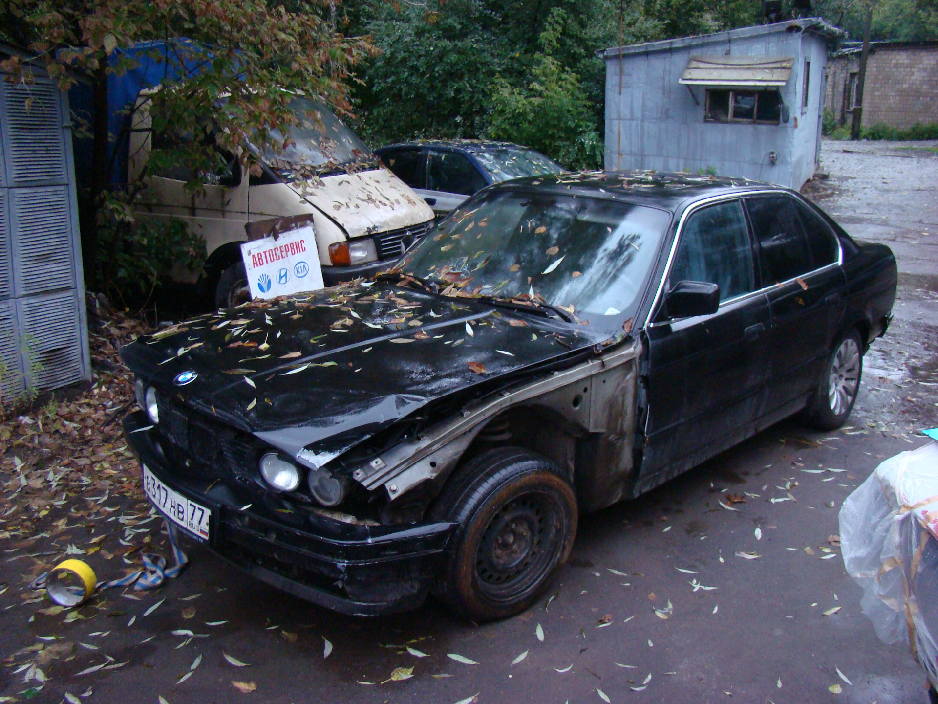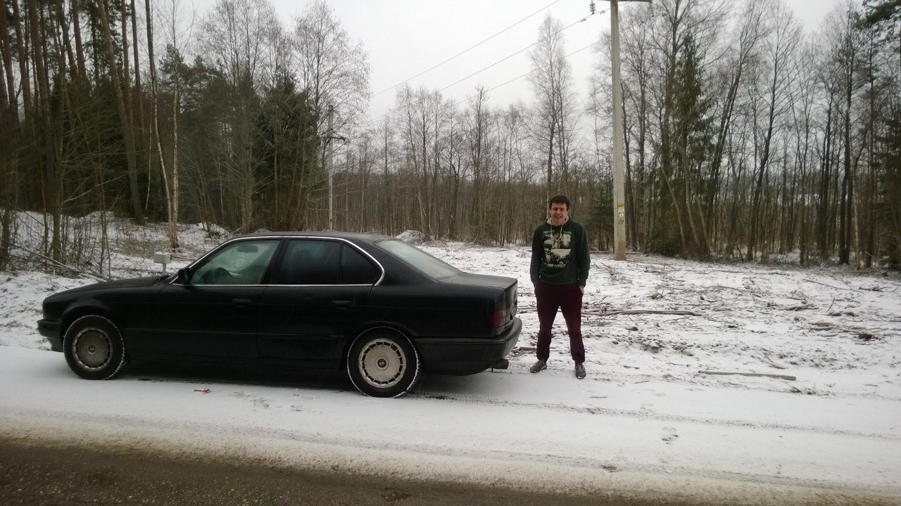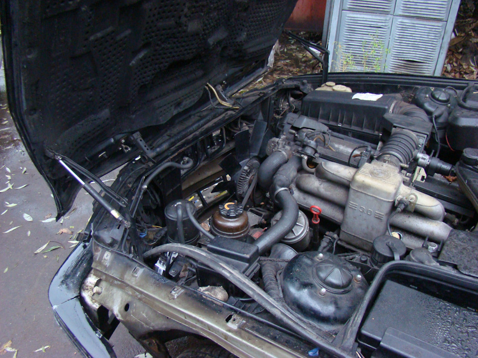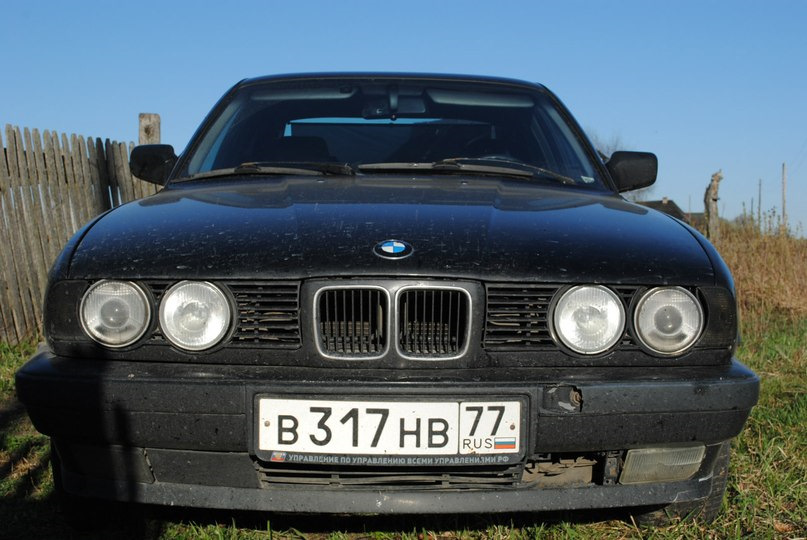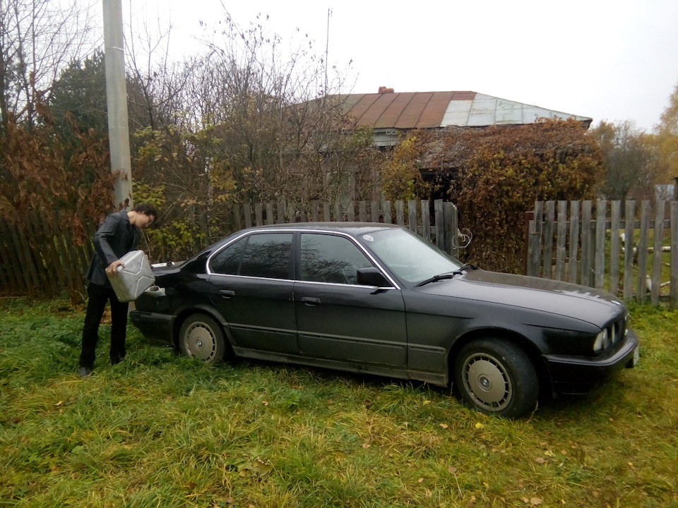 А такой я купил эту БМВ за год до описываемых событий — после аварии машина обошлась мне в сорок тысяч рублей. В Россию она была ввезена уже немолодой, отбегав 9 лет по Германии, но удивительно, что и здесь никто из бесчисленных владельцев так не смог прикончить мотор — на блоке M30B30 стоял ещё заводской номер из документов, а вот механическая коробка Getrag с оранжевой наклейкой и задний редуктор уже были не "родные" — по словам прошлого хозяина, их привезли из Беларуси, где разобрали "семёрку" в кузове E32. По уму, такая коробка заправляется жидкостью Dextron 2D, но у меня внутри была залита обычная «минералка», которая при понижении температуры на улице до плюс 5 градусов первые километры давала о себе знать довольно "вязким" переключением, хотя и требуемую серию Декстрона ("двойка" сделана на минеральной основе) очень текучей тоже не назовёшь.