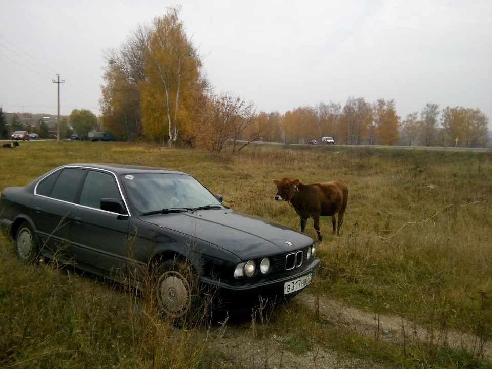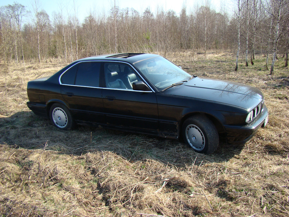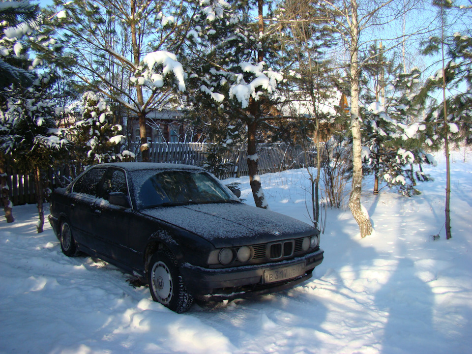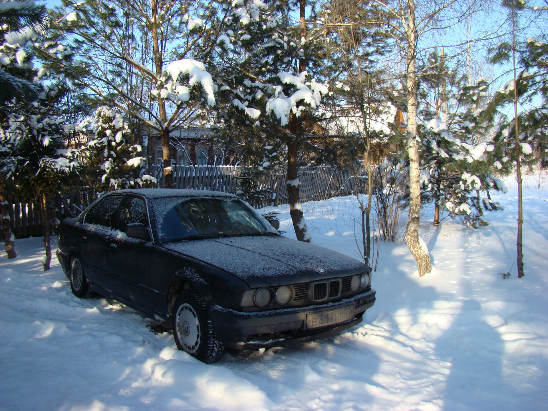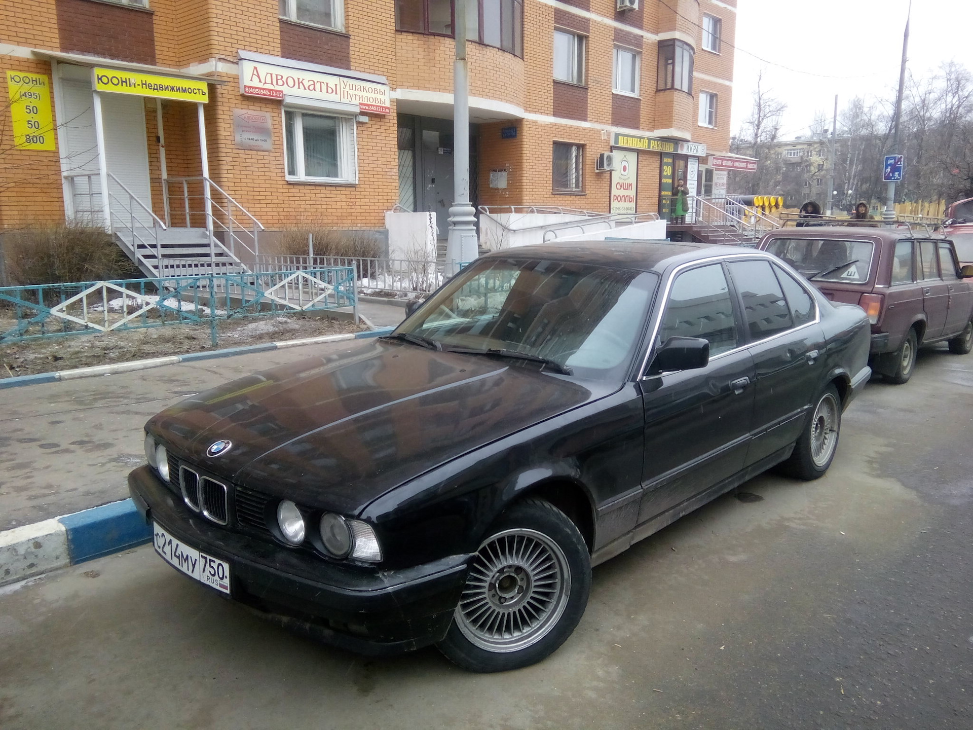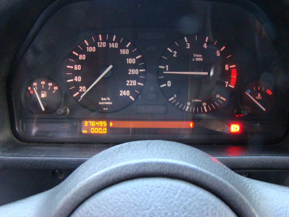 А такой я купил эту БМВ за год до описываемых событий — после аварии машина обошлась мне в сорок тысяч рублей. В Россию она была ввезена уже немолодой, отбегав 9 лет по Германии, но удивительно, что и здесь никто из бесчисленных владельцев так не смог прикончить мотор — на блоке M30B30 стоял ещё заводской номер из документов, а вот механическая коробка Getrag с оранжевой наклейкой и задний редуктор уже были не "родные" — по словам прошлого хозяина, их привезли из Беларуси, где разобрали "семёрку" в кузове E32. По уму, такая коробка заправляется жидкостью Dextron 2D, но у меня внутри была залита обычная «минералка», которая при понижении температуры на улице до плюс 5 градусов первые километры давала о себе знать довольно "вязким" переключением, хотя и требуемую серию Декстрона ("двойка" сделана на минеральной основе) очень текучей тоже не назовёшь.