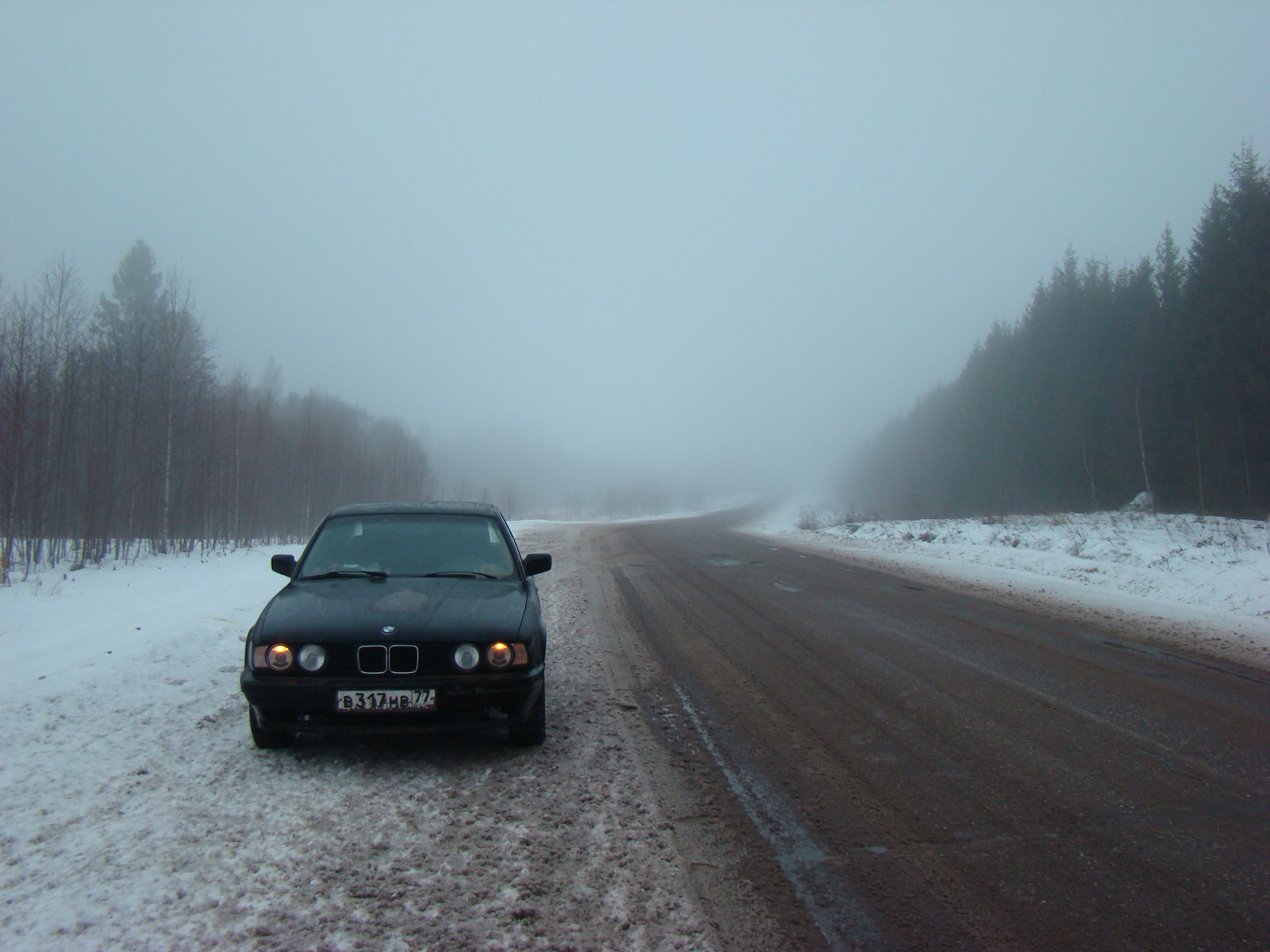 Первый выезд после ремонта — в Санкт-Петербург. Те немногое известные мне законы физики утверждают, что такого не может быть — привод задний, стабилизации нет, но шасси машины своё дело знает: БМВ почти не выравнивается полностью, однако чувство связи с ней я не теряю. Заправляюсь после Новгорода, отмечаю, что большой мотор не сделал "пятёрку" прожорливее — по трассе она потребляла те же 9 литров на "сотню", что и 520ia того же раннего года, на которой я ездил до этого. Совершенно поразительно работает "четырёхканалка" Bosch — при разном покрытии под колёсами на скорости 140км/ч можно просто бить ногой по педали и машина будет тормозить, не теряя курс. Сами тормоза тоже очень неплохие (сейчас на Ауди мне очень не хватает таких) — спереди стояла четырёхпоршевая система с дисками 302/30 от всё той же белорусской 735 E32.