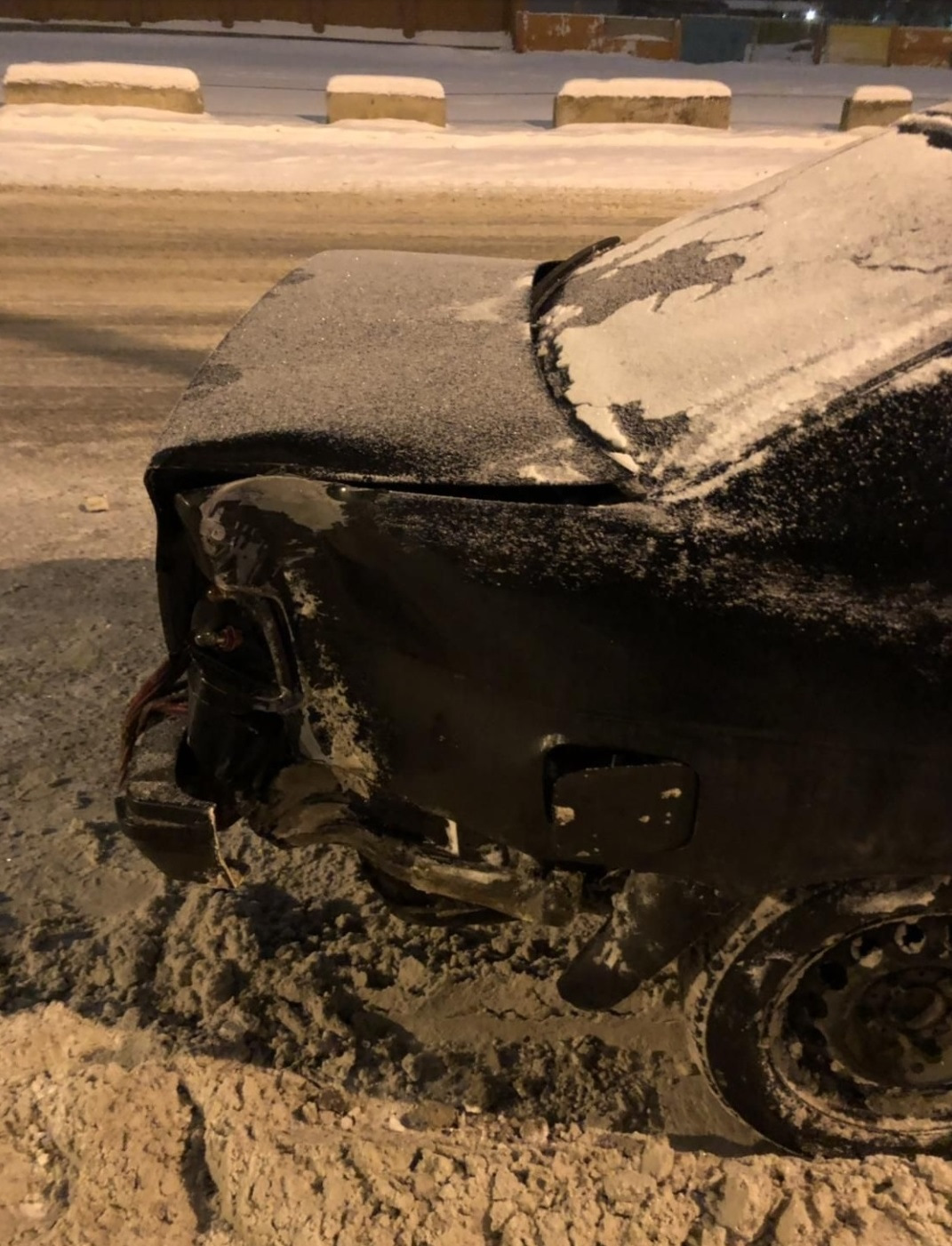 После удара об отбойник у машины был смят торец левого лонжерона, погнут корпус амортизационной стойки и оба левых рычага, а крыльчатка вентилятора и пробитый ею радиатор охлаждения лежали в багажнике, почему-то не работал и насос ГУРа. Заднего бампера не было вообще.