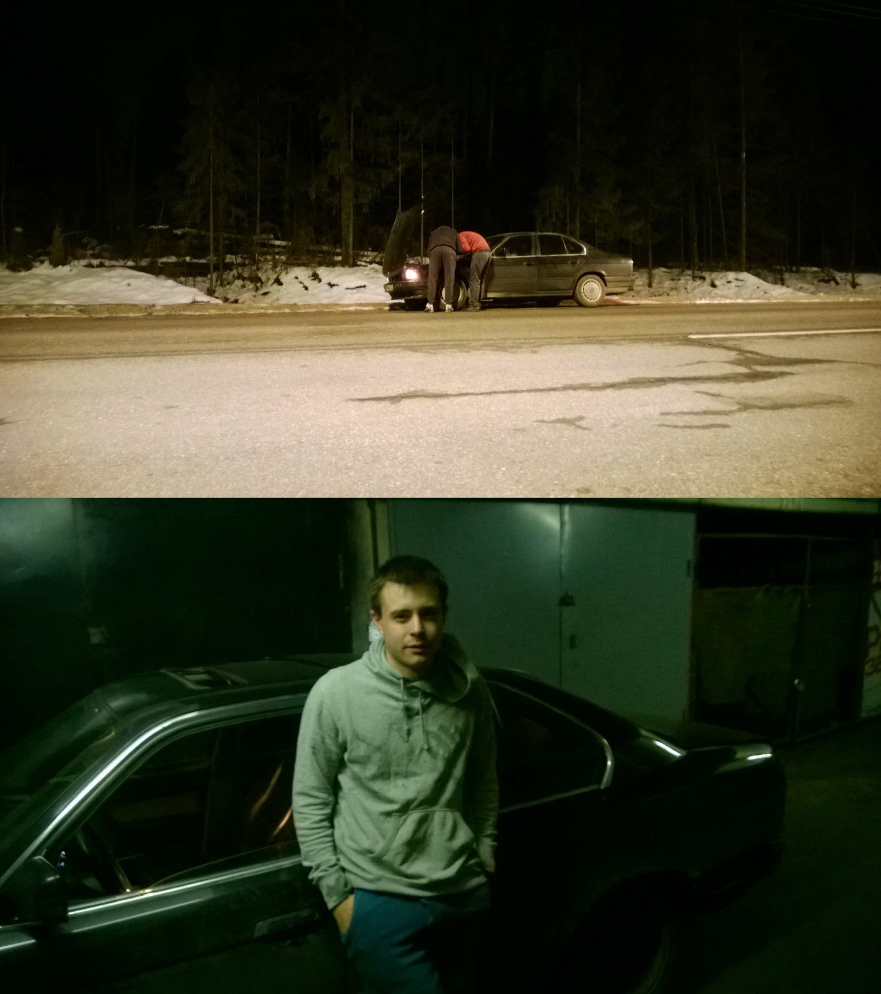 Ещё я менял задние ступичные подшипники и суппорт с одной стороны, оба передних тормозных шланга, в ходе замены которых с одной стороны пришлось нарезать новую резьбу, были планы и переварить ей пороги, но в ноябре 2015 года я всё же решил её продать — в изменившихся условиях (вместо съёмного гаража у меня теперь появилась жена и съёмная квартира) прежние отношения с ней выстраивать уже не удавалось и она всё больше стояла. Сделка состоялась в час ночи, а покупатели, прокатившись за рулём, даже не смотрели кузов снизу: мы договорились на 80 тысяч рублей, и БМВ, шлифанув задними колёсами, уехала в темноту — как позже выяснилось, в Подольск.