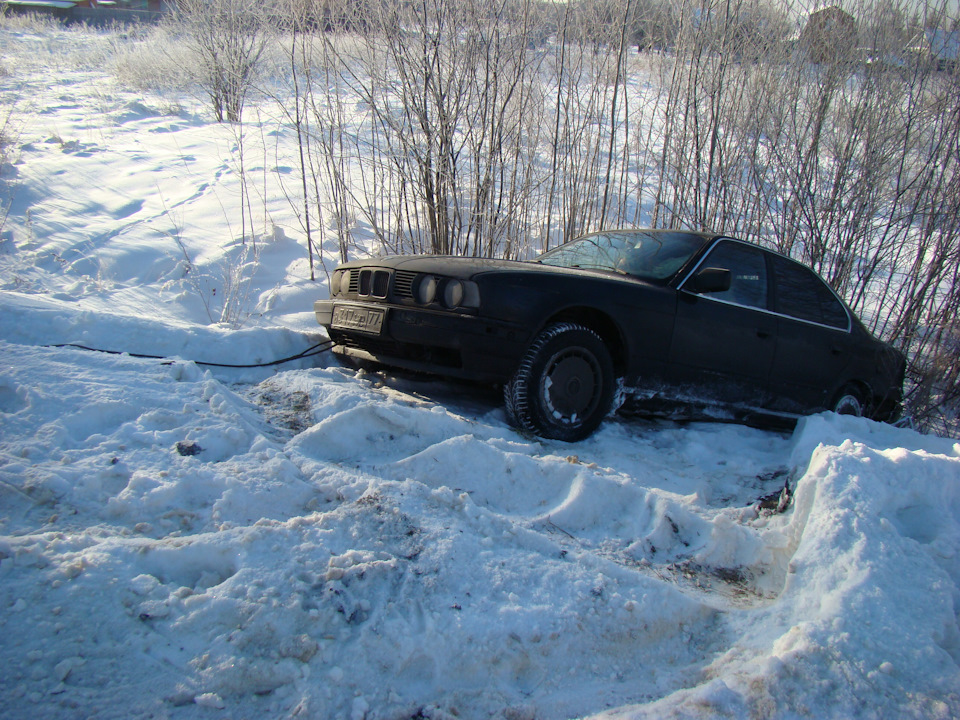Если протектор плохой, то БМВ зимой и вправду может застрять даже на асфальте, чуть присыпанном снегом, но на свежих "Винтер Карвинг" я без проблем ездил в деревню зимой, прокладывая след.