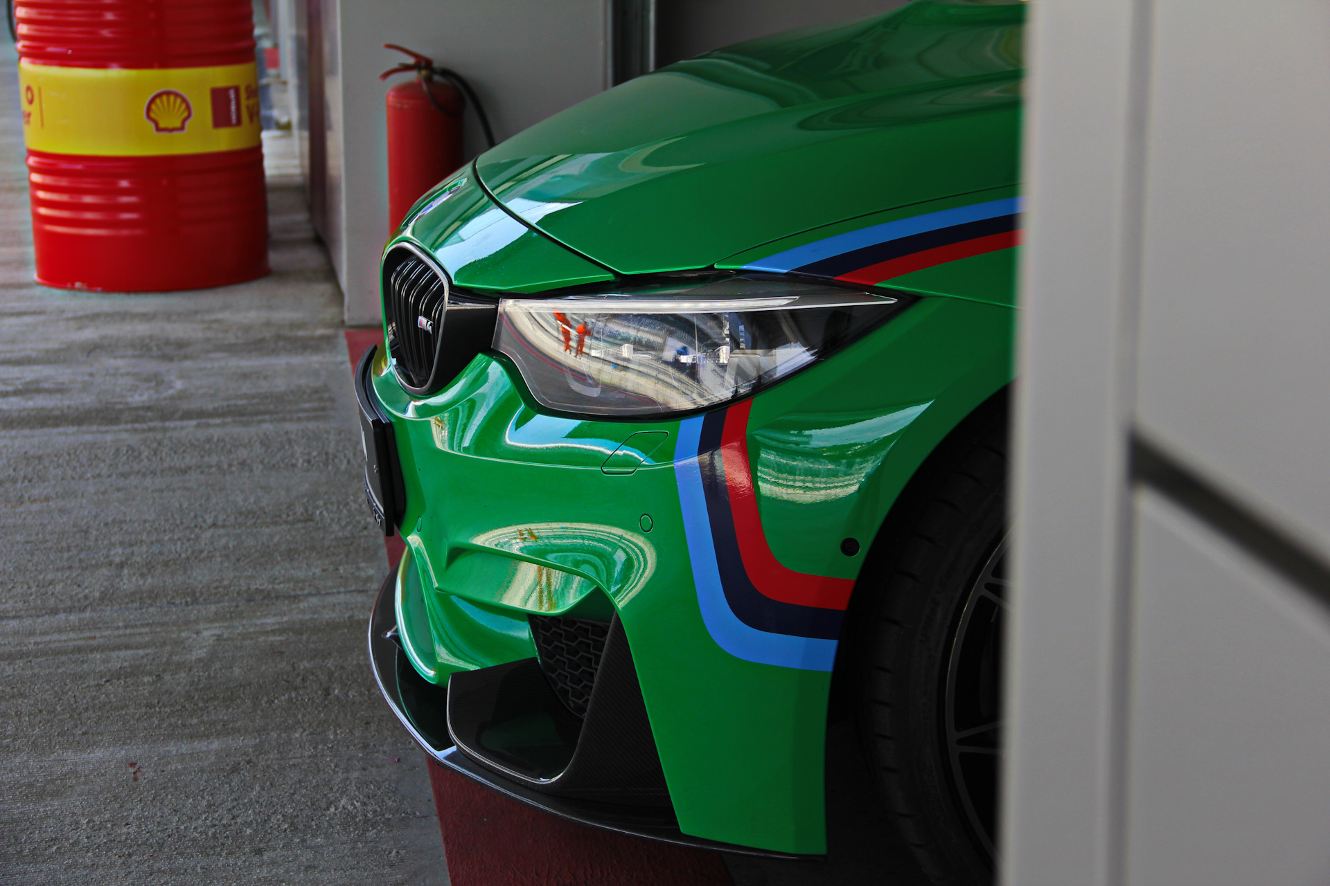 Проехав приблизительно 10-12 кругов в режиме 3-4 круга активно 1 круг для охлаждения тормозов, был объявлен заезд на пит-лейн. Нагрев тормозной системы я проверял дедовским способом- трогал колесные диски. Смелый парень!) Но на удивление не обжёгся. В виде опции, на эМку можно заказать карбоно-керамические тормоза, боюсь представить, как они останавливают эту массу, если даже стоковой системы мне хватало за глаза и ни каких признаков перегрева дисков с колодками не было замечено.