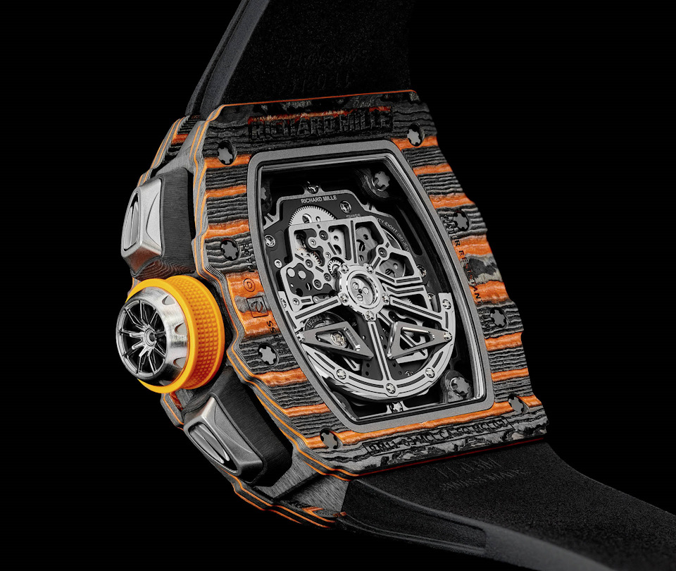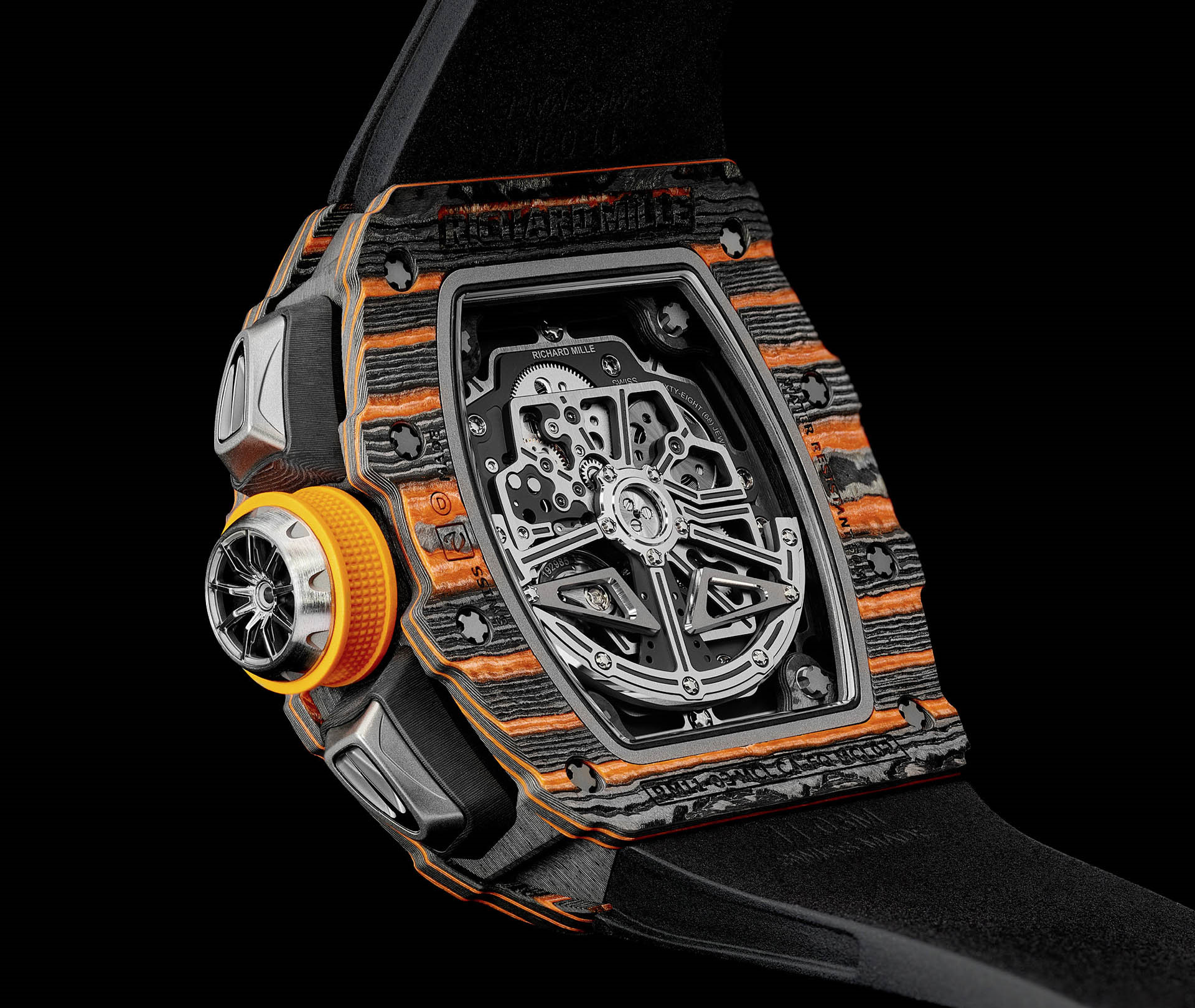 Над хронографом работал директор McLaren по дизайну Роб Мелвилл и инженер Richard Mille Фабрис Намура. Совместными усилиями был создан корпус часов из многослойного карбона с частицами графена.