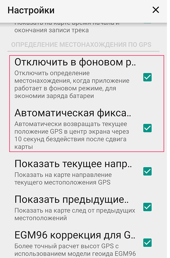 2) Отключение GPS, если программа «свернута» (т.е. неактивна).