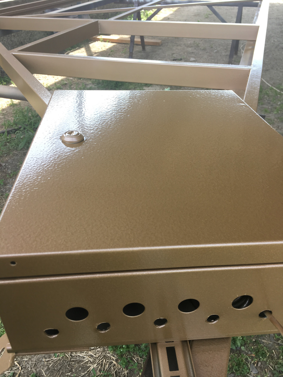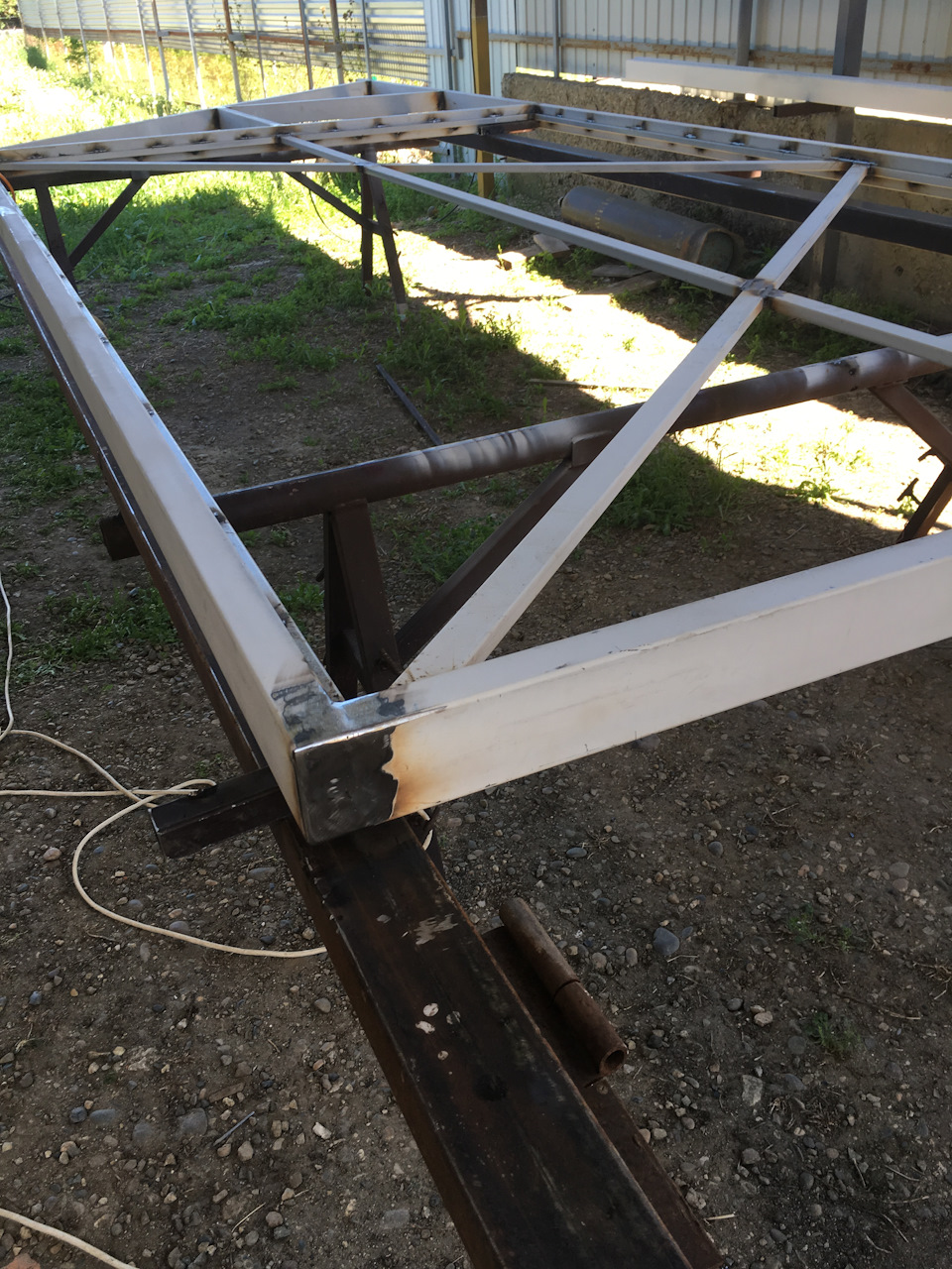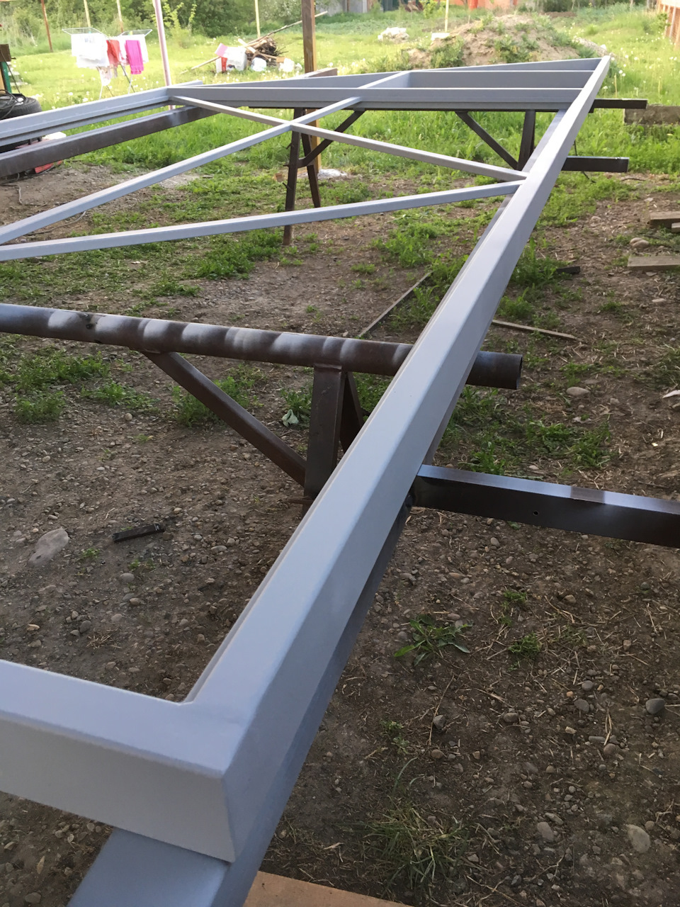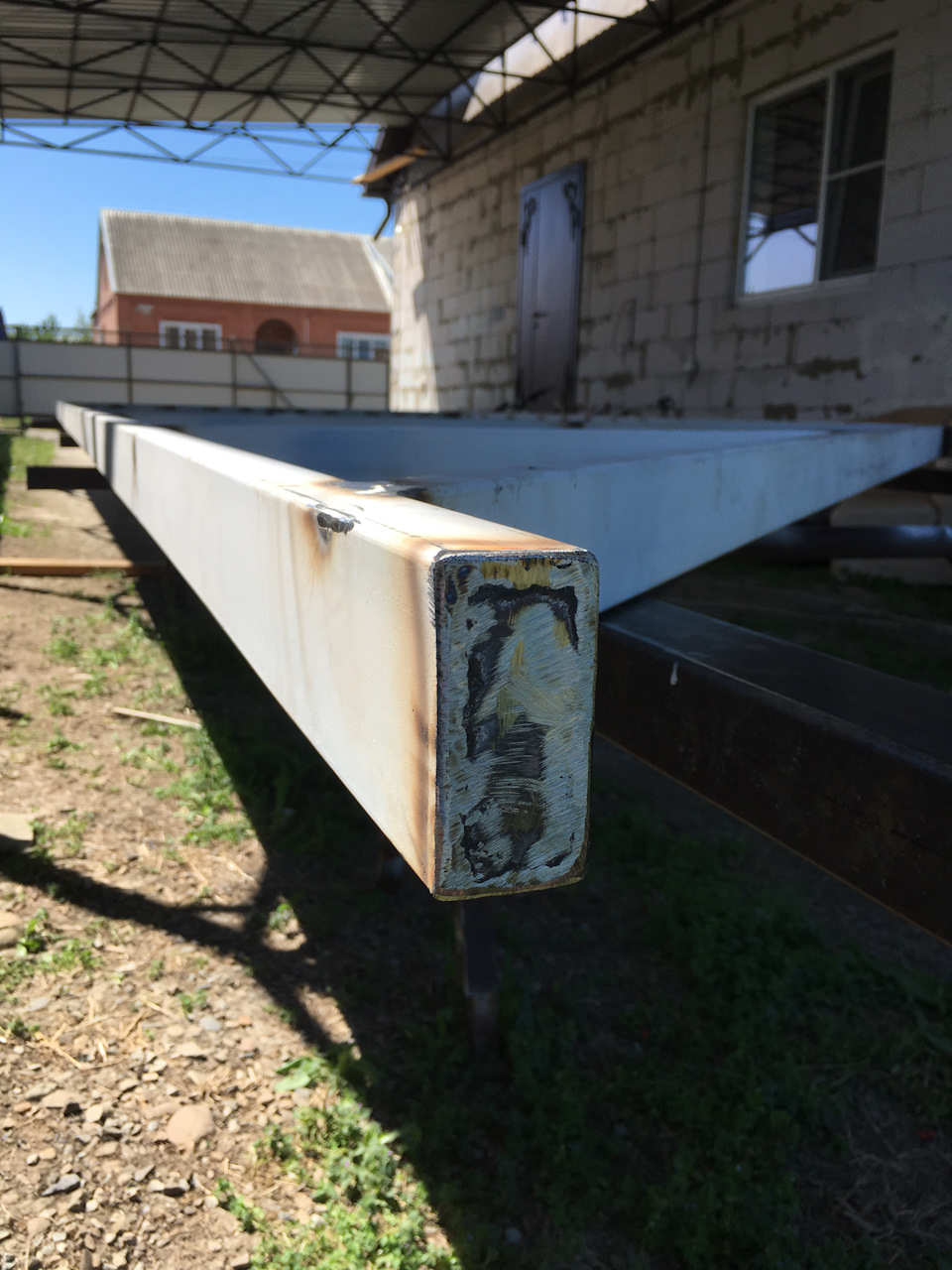 Покрасили и пусть сохнет. Едим к заказчику монтировать балку и роликовые блоки.