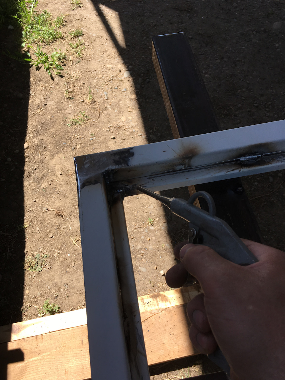 Ну да ладно, пора за работу. После того как обварили все стыки, начинаем зачищать, сперва зачистным кругом, потом шлифовальным лепестковым.
