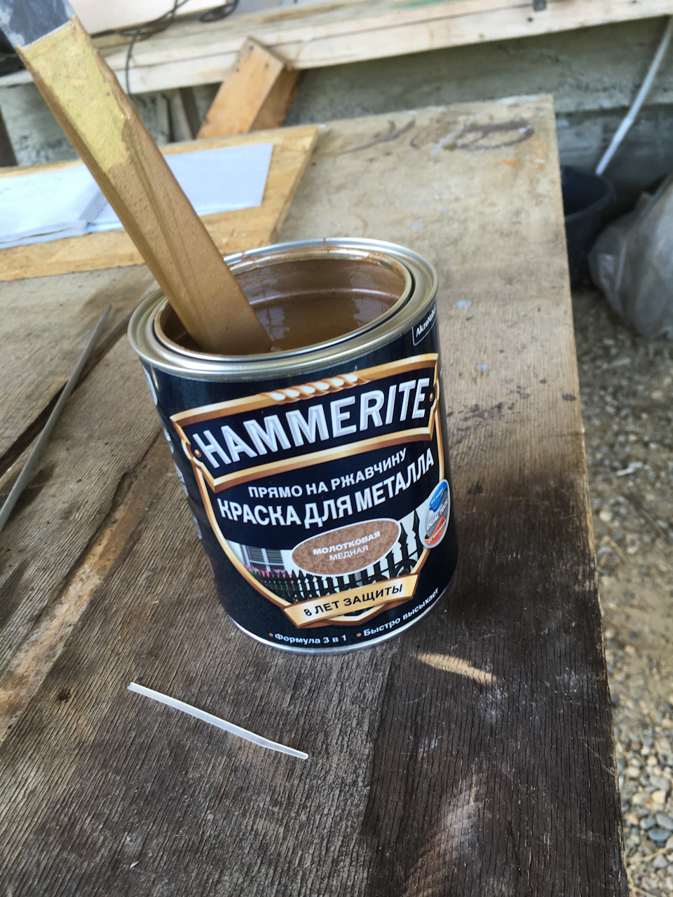 После того как грунт высох готовим эмаль. Заказчик предпочел молотковую.