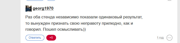 Оучу позвонил и включил дурачка, что он стенды и настройщиков не обвинял, но на стенд боится ехать замерять сток выявлять истину. Может когда научится моторы строить и понимать в них что-то, то перестанет пукан гореть на чужие результаты.