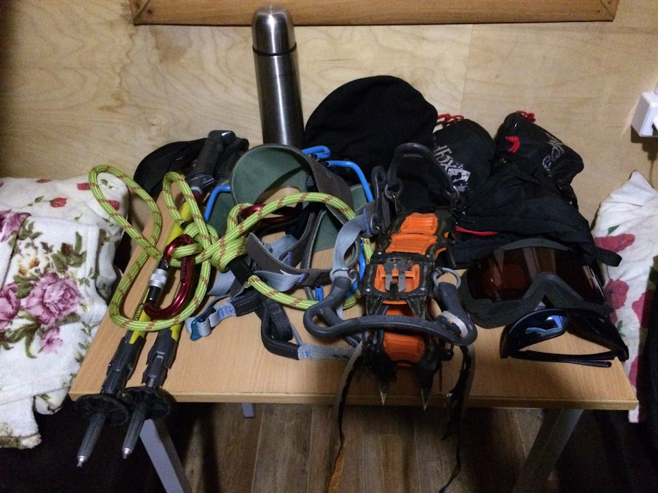 Первый пункт из списка можно взять в прокат только на 1 день восхождения, второй пункт можно взять на два дня — восхождение и выход с Косой Полке, при этом сэкономив приличную сумму денег. А вот остальные пункты из списка вам потребуются и в остальные дни для акклиматизационных выходов, поэтому лучше иметь как личное снаряжение.