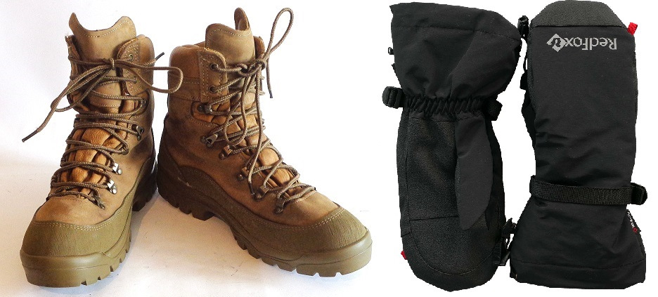 4) Горные трекинговые ботинки + Бахилы (или высокогорные альпинистские двухслойные ботинки)
