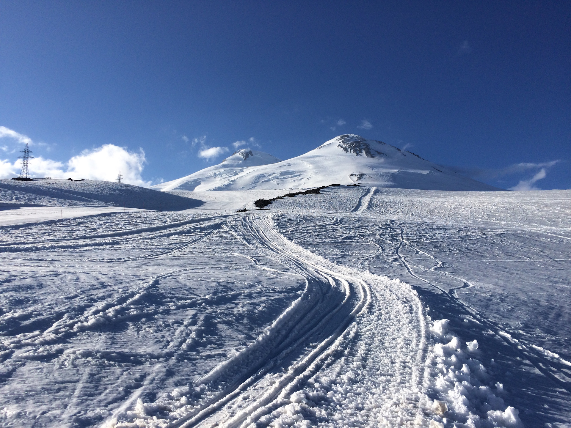 — ночевка на Бочках (3700м), подъем на ратраке до скал Пастухова (4500м) и дальнейшее восхождение на западную вершину в течение 7-9 часов с последующим спуском до ратрака на 4500м, дальше канатная дорога