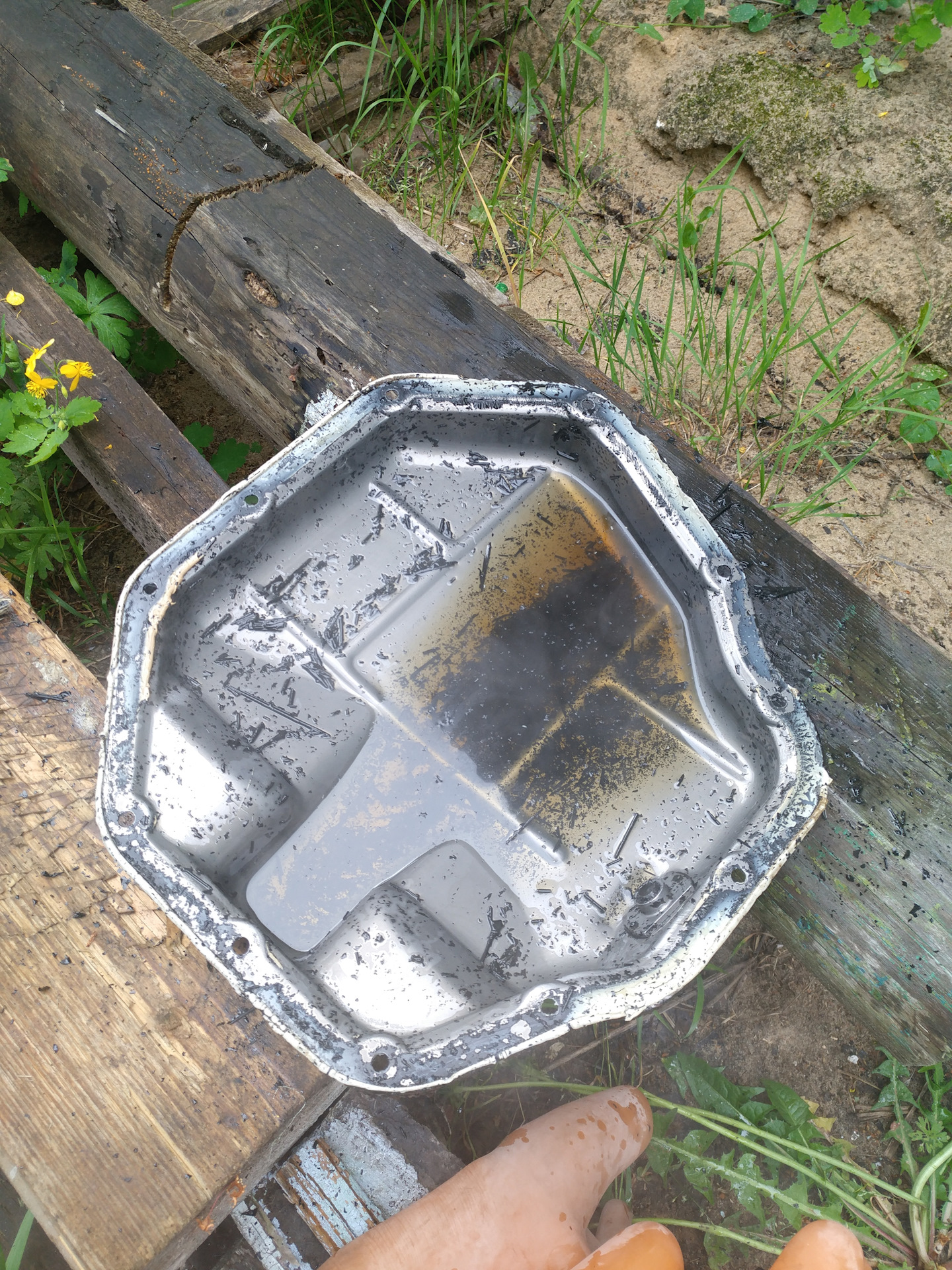 Вчера менял масло, слил старое, снял поддон чтоб очистить от краски и заодно посмотреть состояние двигателя снизу