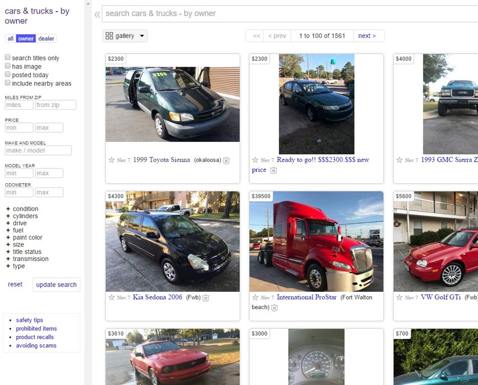 Частное лицо. Где же искать людей, которые готовы продать Вам свое корыто. И… Конечно же, Craigslist.org. Это аналог наших Авито, АвтоРиа и прочих досок объявления, где продаются автомобили и другие вещи. Когда я первый раз зашел на сайт, я немного был в ступоре, так как дизайн на уровне 1990 годов, ничего не понятно, но тем неимение ним пользуются почти все американцы и продают/сдают там все.