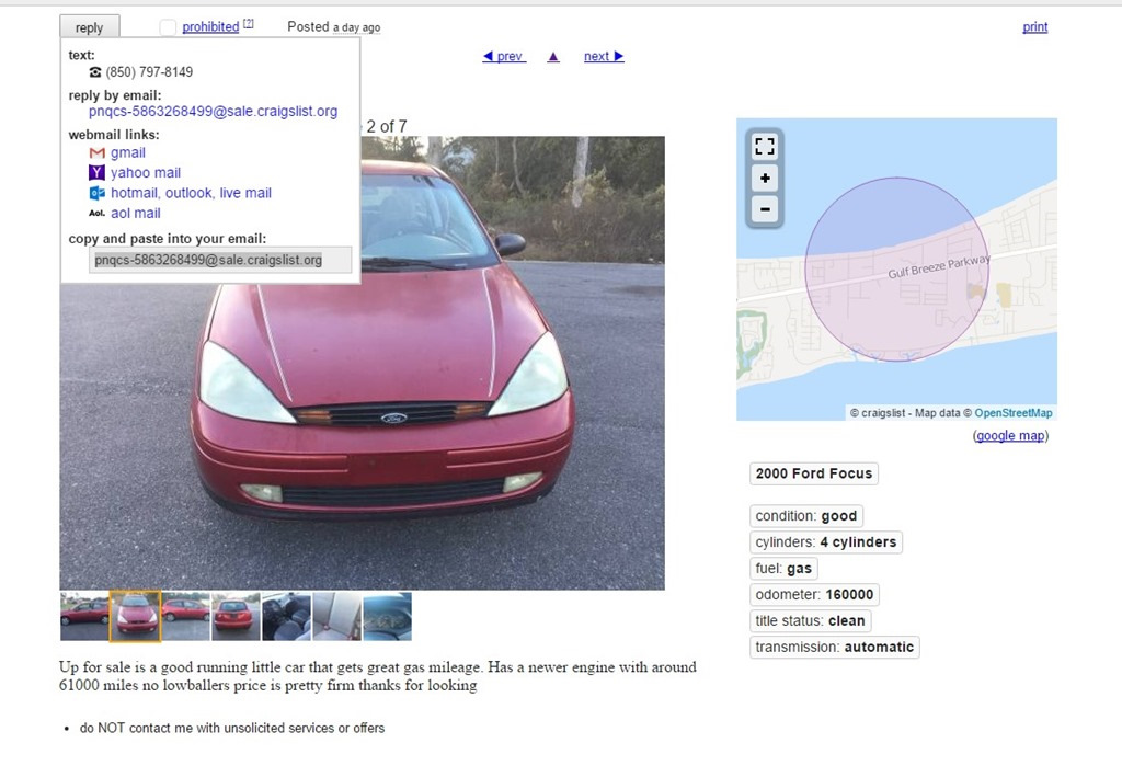 Допустим, выбрали мы Ford Focus 2000 года за 1750$. Как пишет владелец в хорошем состоянии и пробег всего 61000 миль.