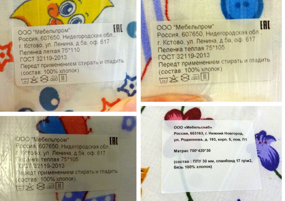 — Пеленки -Нижегородский текстиль ("Нидегородский") от … "Мебельпром" и "Мебельснаб". Зато 100% хлопок.