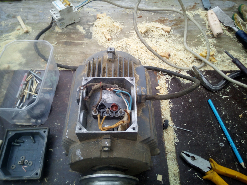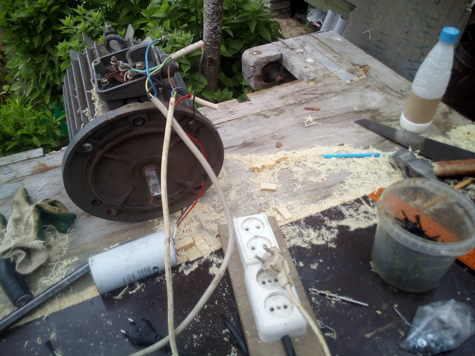 когда строился и 380В не было, то бетономешалку на 380В двигатель подключал через другой — 7,5кВтный…тянуло только в путь ))). Сначала 7,5кВт эл.дв. запускал от 220 (с кондерами), а после раскрутки с его клемм включал бетономес (ерез АВ) все норм работало