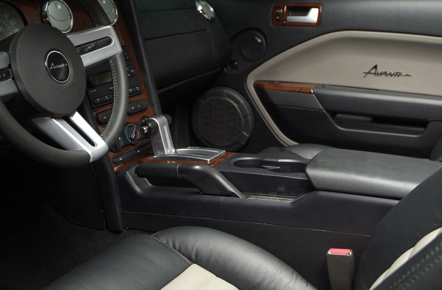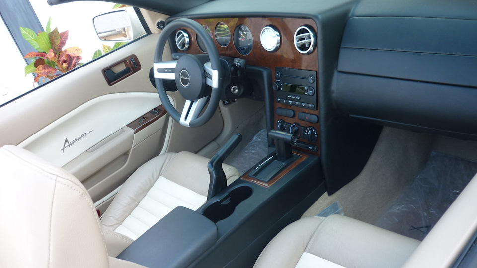 В Avanti на базе Mustang совершенно другая передняя панель без фирменной мустанговской симметрии. Все очень кустарно и нелепо, как и снаружи.