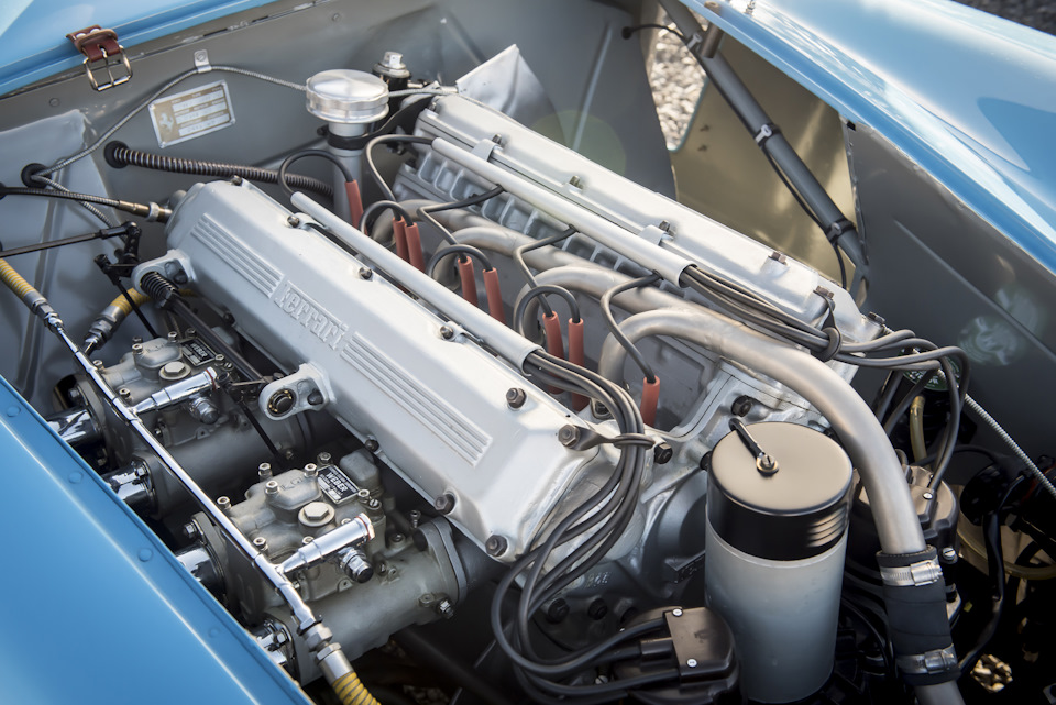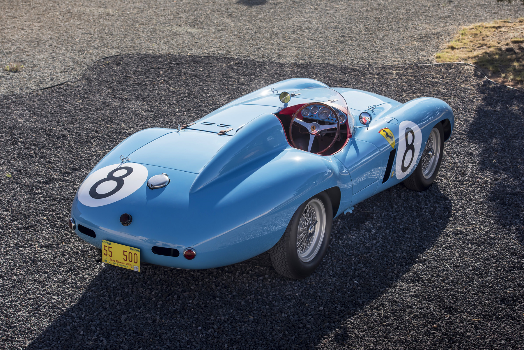 На тот момент, он не знал никаких подробностей. Однако, на сегодняшний день история этого на самом деле легендарно голубого Ferrari считается самой полной и задокументированной из всех гоночных машин марки. Это Ferrari 500 Mondial Series II выпуска 1955 года, шасси номер 0556 (0446) MD. Сама модель Mondial относится к так называемому семейству Monza 1953-57 годов: двухместные гоночные машины, оснащенные рядными 4-цилиндровыми двигателями конструкции Аурелио Лампреди. Такая схема была необычной для Ferrari, но у фирменных для марки моторов V12 пик крутящего момента находился очень высоко и, в качестве решения, в 1951 году появился четырёхцилиндровый агрегат. Дальнейший успех мотора в машинах Формулы-2 стимулировал идею применить схожий агрегат и для автомобилей чемпионата World Sportscar Championship. Более того, в связи с уходом Alfa Romeo, чемпионаты мира Формула-1 в 1952 и 1953 годах тоже проводились по регламенту класса Формула-2 и оба года их выиграл Альберто Аскари за рулём Ferrari с "рядной четверкой" Лампреди, что и стало поводом для марки назвать следующую машину 500 Mondial (то есть "мировой (чемпионат)"; в то время как "500" являлось типичной для Ferrari отсылкой к объему одного цилиндра двигателя). Конкретно Ferrari 500 Mondial Series II производились в 1955 году и отличались от машин первой серии выпуска конца 1953 года усиленной рамой из овальных труб, модернизированной передней подвеской, новой 5-ступенчатой МКПП-transaxle и увеличенным до 150 литров бензобаком. Ну а их по-прежнему 2-литровый двигатель Tipo 111 мощностью 170 л.с. был доработан согласно опыту, полученному в сезоне 1954 года в Формуле-1.