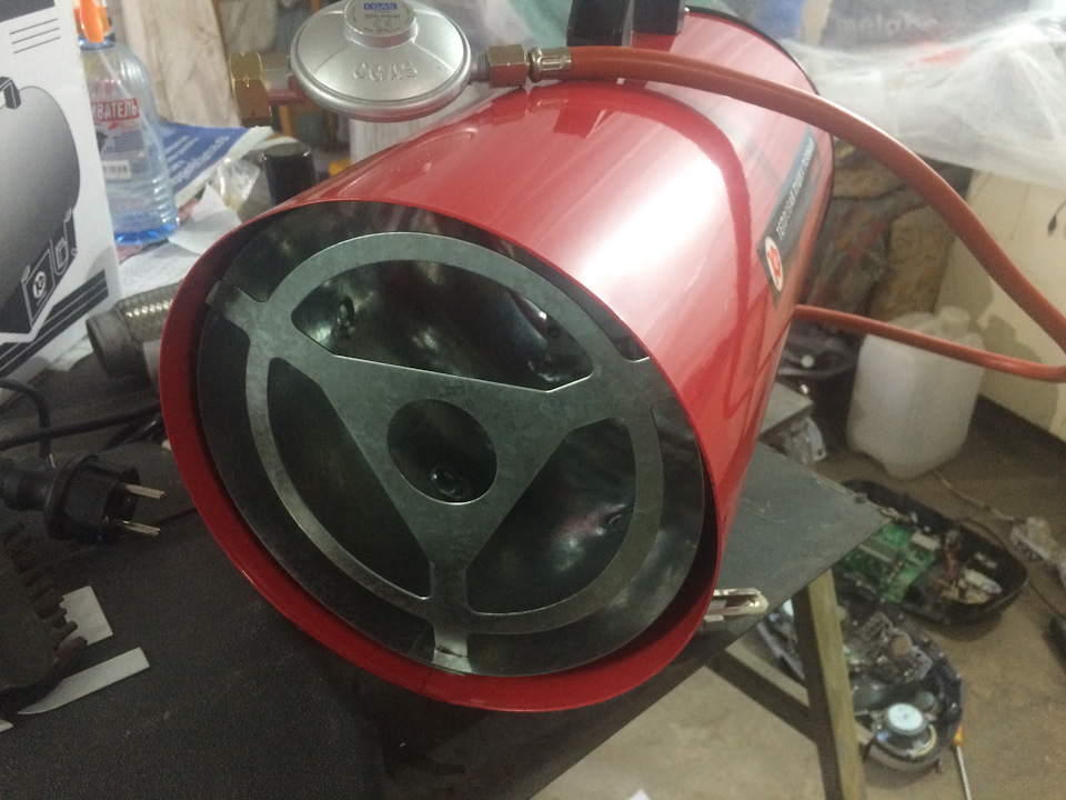 Тепловую электропушку я особо не рассматривал в качестве основного источника тепла по причине слабого напряжения в гаражной сети, да и опять же цена обогрева будет космос, а смотрел на газовые пушки.