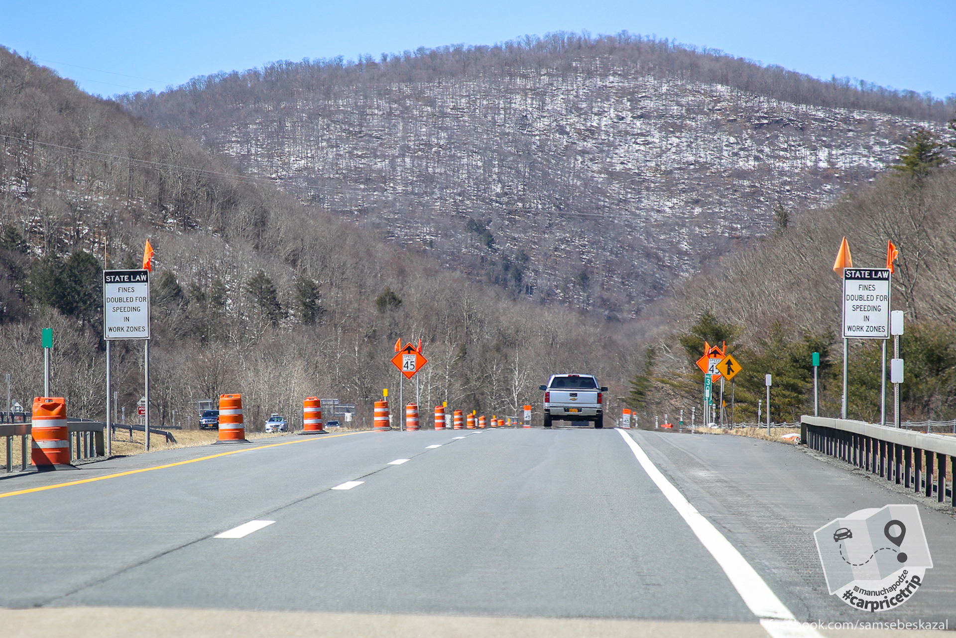 А этот о том, что в зоне ремонтных работ штрафы удваиваются. Я видел таблички в различных штатах с разным текстом и угрозами в случае, если вы заденете рабочего, вплоть до тюремного срока. Больше всего мне понравилась имитация школьной доски с написанным мелом текстом: "Мой папа работает здесь, пожалуйста, сбросьте скорость".