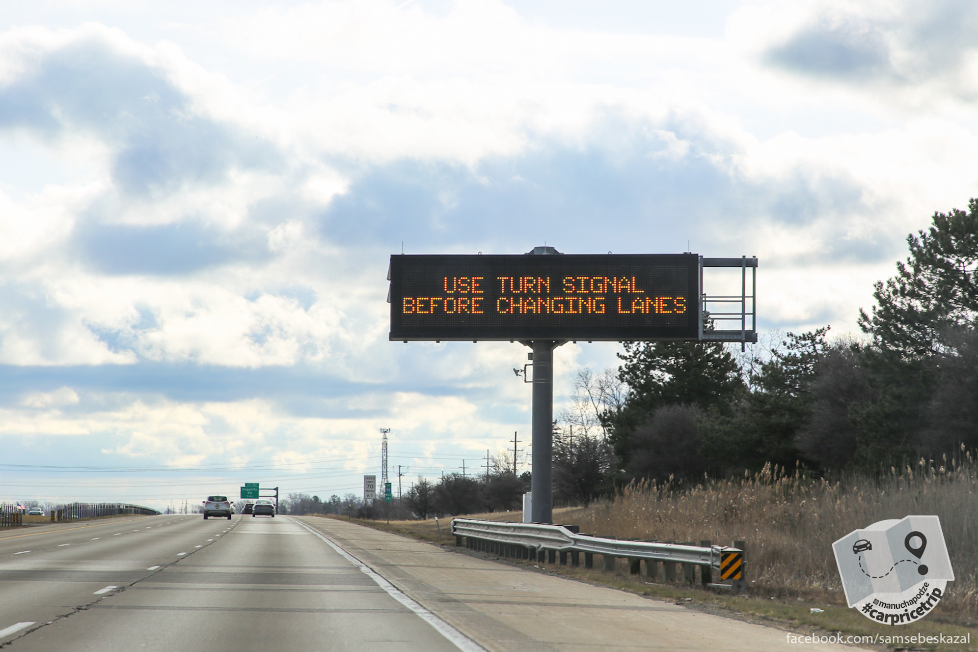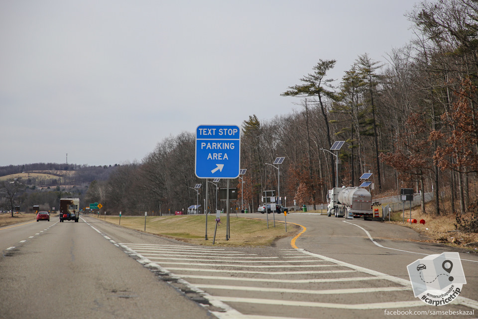 Американские знаки более дружелюбные, если вы понимаете о чем я, иногда они откровенно проявляют заботу, вот этот, например, считает, что текстовое сообщение можно написать и попозже, и предлагает остановиться.