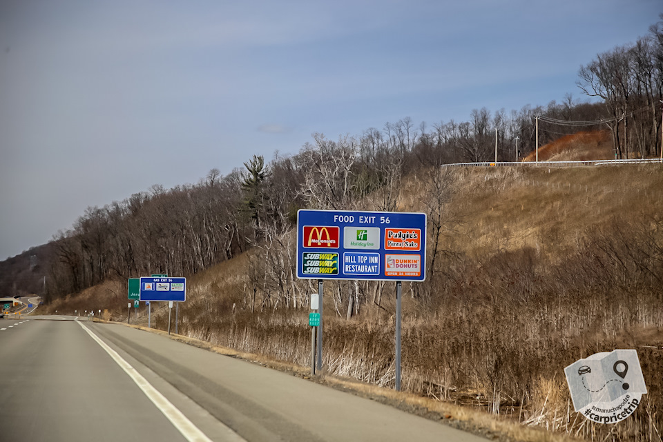 Чтобы заправиться или поесть, с трассы придется съехать, но и тут знаки придут вам на помощь.