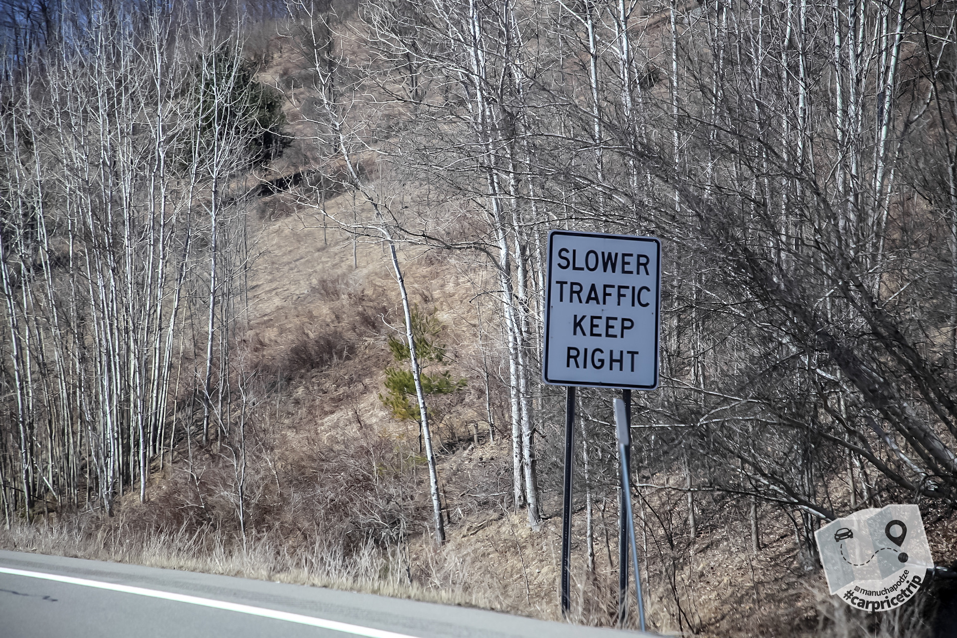 Иногда попадаются знаки, сообщающие очевидные вещи, вроде просьбы медленным автомобилям ехать в правой полосе…