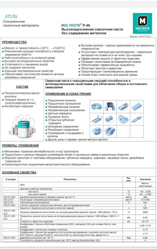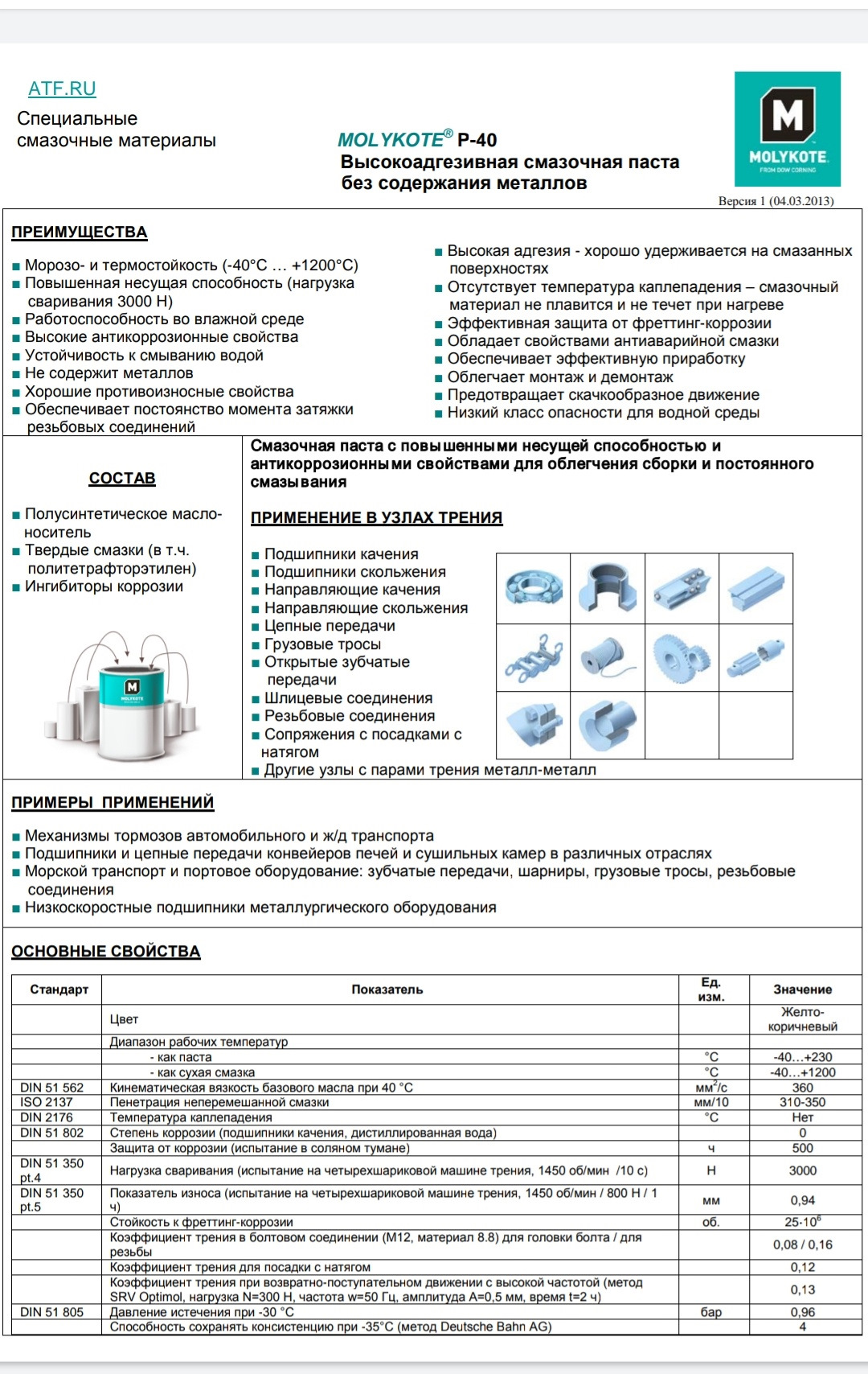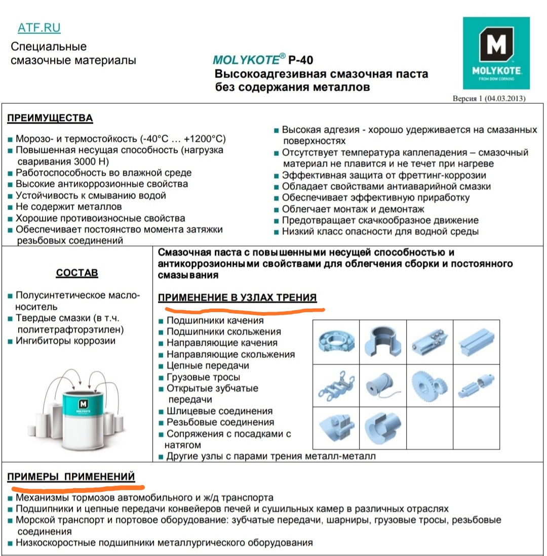 Основные ее преимущества — держит экстремально высокую температуру (до 1000 град.) (нужно в деталях тормозной и выхлопной системы), также работает при больших давлениях (резьба).