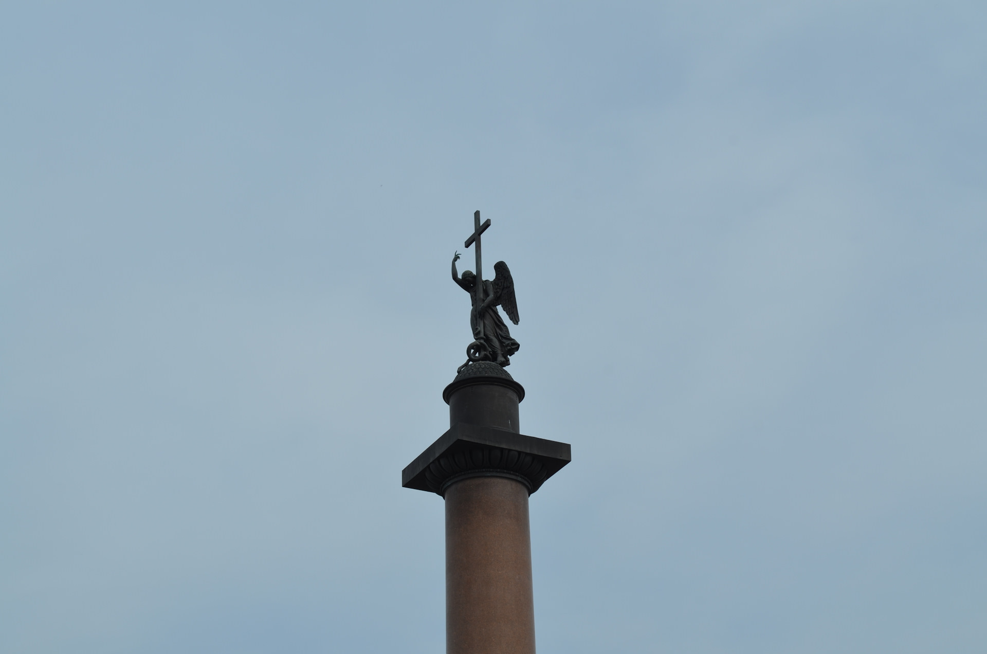 В центре площади возвышается Александровская колонна (1830—1834, арх. Огюст Монферран) из гигантского полированного монолита розового гранита высотой 25,6 саженей. На ее вершине установлена фигура ангела с крестом, выполненная скульптором Б. И. Орловским. Ансамбль Дворцовой площади не был бы законченным без этого массивного памятника. Колонна и Триумфальная арка Главного штаба посвящены победе России в войне с Наполеоном. Текст на табличке у подножия колонны гласит «Александру I благодарная Россия». Примечательно, что колонна держится на постаменте только за счет собственного веса.