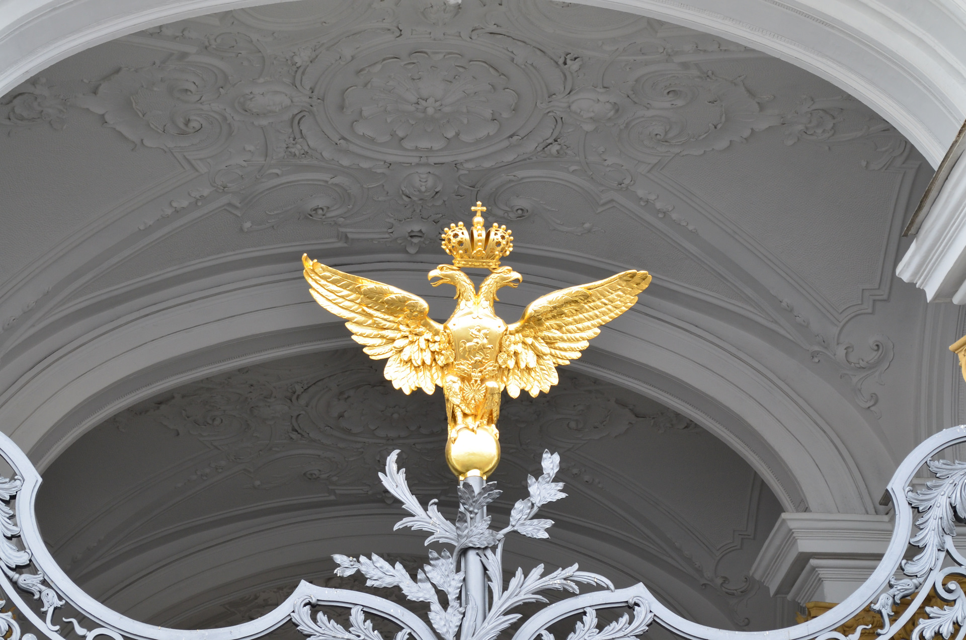 Любопытная деталь: на той стороне фасада, что обращена к Новому Эрмитажу, — два картуша c изображением герба Российской империи. В советское время в них были вмонтированы гербы СССР, однако несколько лет назад, во время реставрации фасада, ему вернули исторический облик.