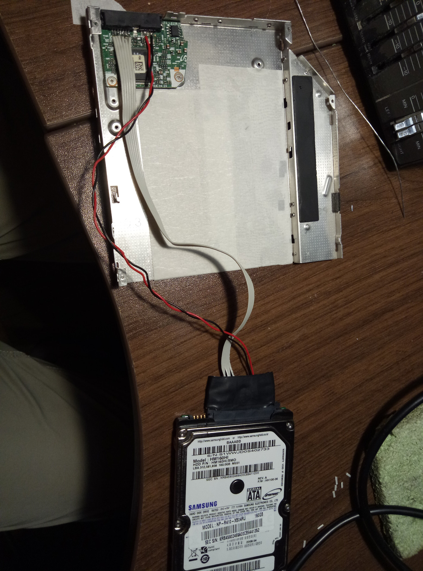 Сейчас открыл вашу тему снова, мне надо к ноутбуку подцепить HDD от компа, я думаю подключить его при помощи SATA провода, чтобы данные на ноут передавались по нему, а питания подключу от блока питания компа, просто в ноуте у меня, я распоял подключение второго жесткого диска, место на плате было и в корпусе место тоже было, видимо на каких то моделях второй диск ставился, он определился, и все отлично, сейчас ноут вообще в ауте, заказал кит с алишки серверный, Материнка, 16 гб оперативы, проц 6 ядерный по 2,1 гб, за 7000 руб. и видяху, вот пока идет думаю затолкать плату от ноута в корпус системника, и подключить пока так, так как в системнике вообще дрова начинка, 2 гб оперативы и проц 2 янедрный пень, сын очень просит, это говно игры вообще не тянет, на ноуте хоть проц мощнее и операивы в 4 раза больше но под систему поставил твердотельный ssd, для инфы места нет вообще, воторой жесткий тоже SSD на 128 Гб, вот и хочу от ПК на 500 Гб туда затолкать., Еще жопа в том, что SATA провод не паяется, все перепробовал, потом загуглил, там так никто и не нашел чем его пояют, проводники непонятные какие то, везде куда его на плату подключить надо, приходится распаивать разъем от жесткого диска…