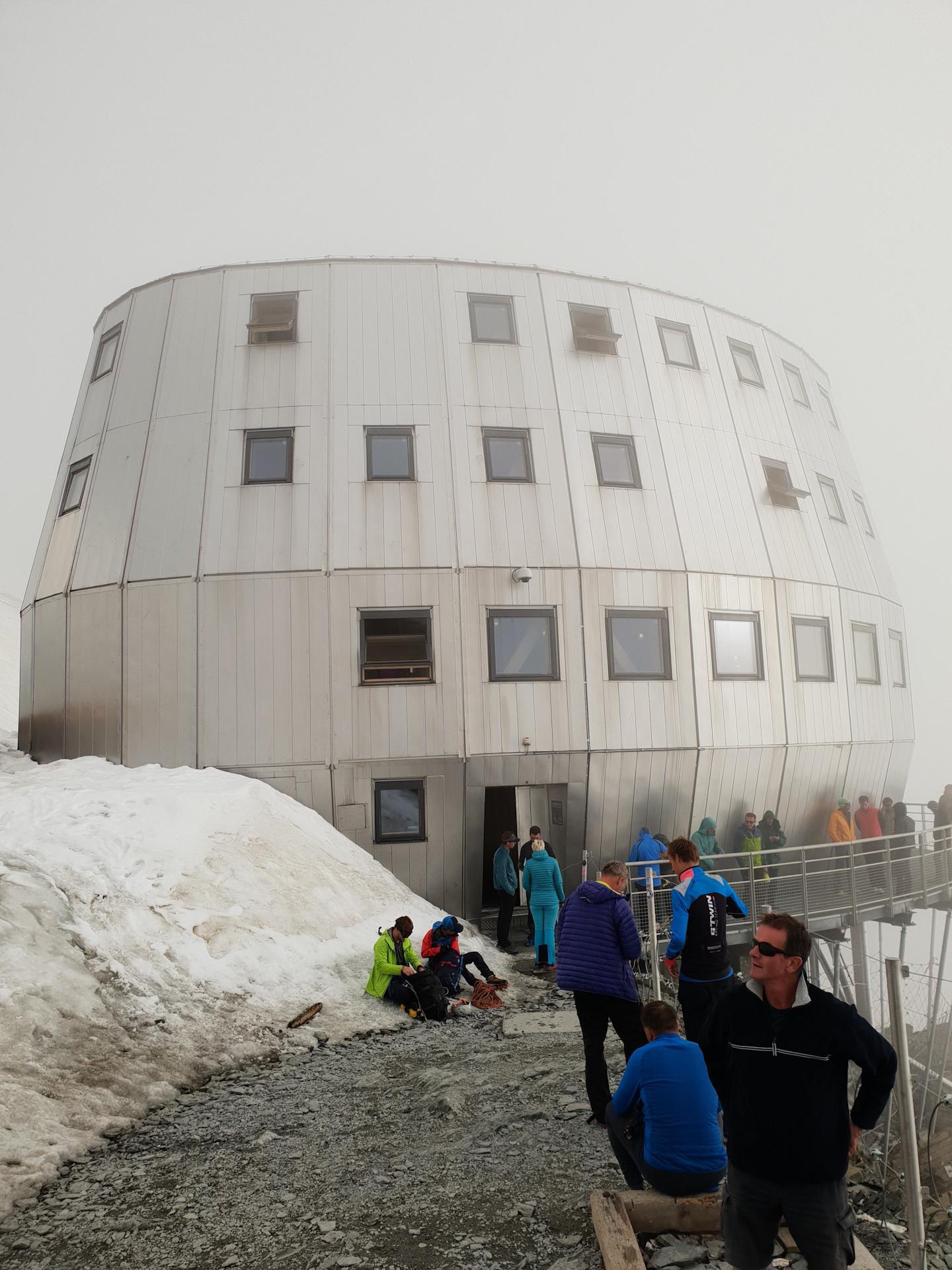15-20 мы приходим в хижину Гюте на высоте 3800, где мы остаемся до 2 ночи перед выходом на штурм. Хижина – она лишь на словах, на деле это огромный гостиничный центр в 4 этажа, способный принять, наверное, под сотню альпинистов с достойным комфортом.