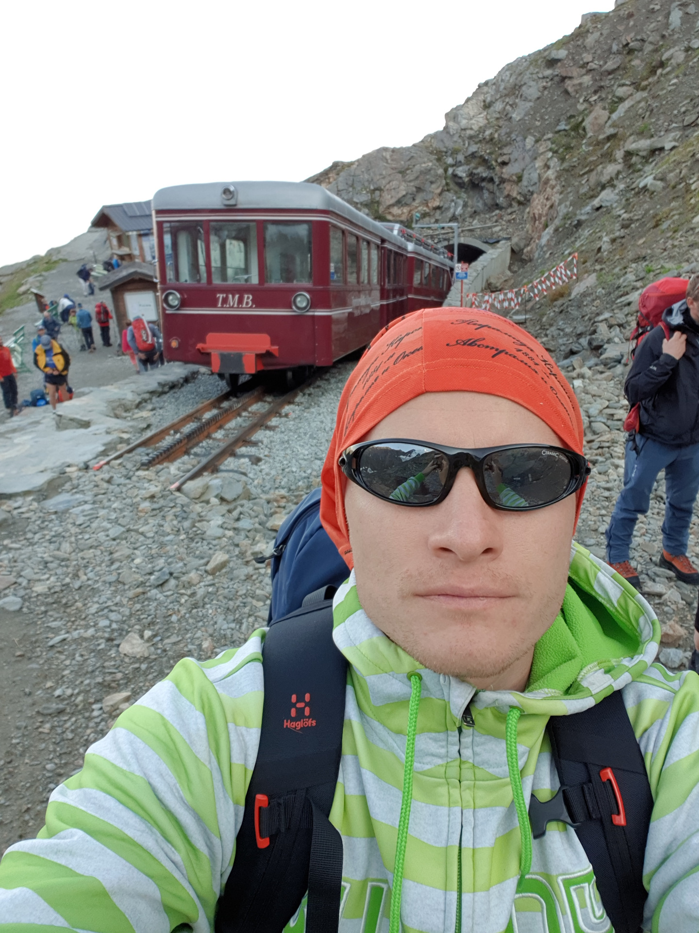 6.30 утра просыпаемся в отеле Шамони, встречаемся с напарником у машины и едем к 7 часам на подъёмник, где нас встречает гид. Поднимаемся на 1800м и пересаживаемся на поезд, идущий на 2380м – нижнюю точку ледника, куда помимо альпинистов часто поднимаются туристы и семьи с детьми.