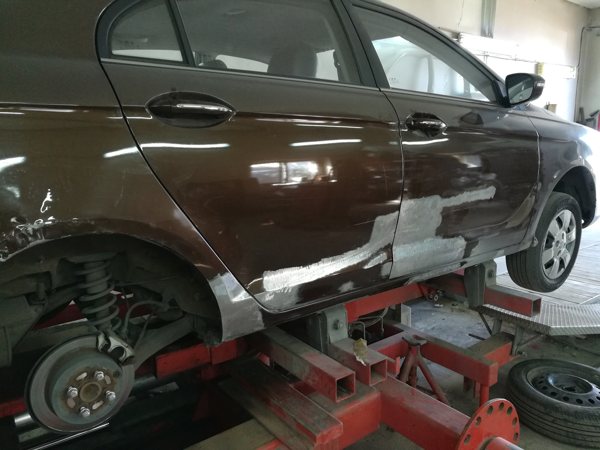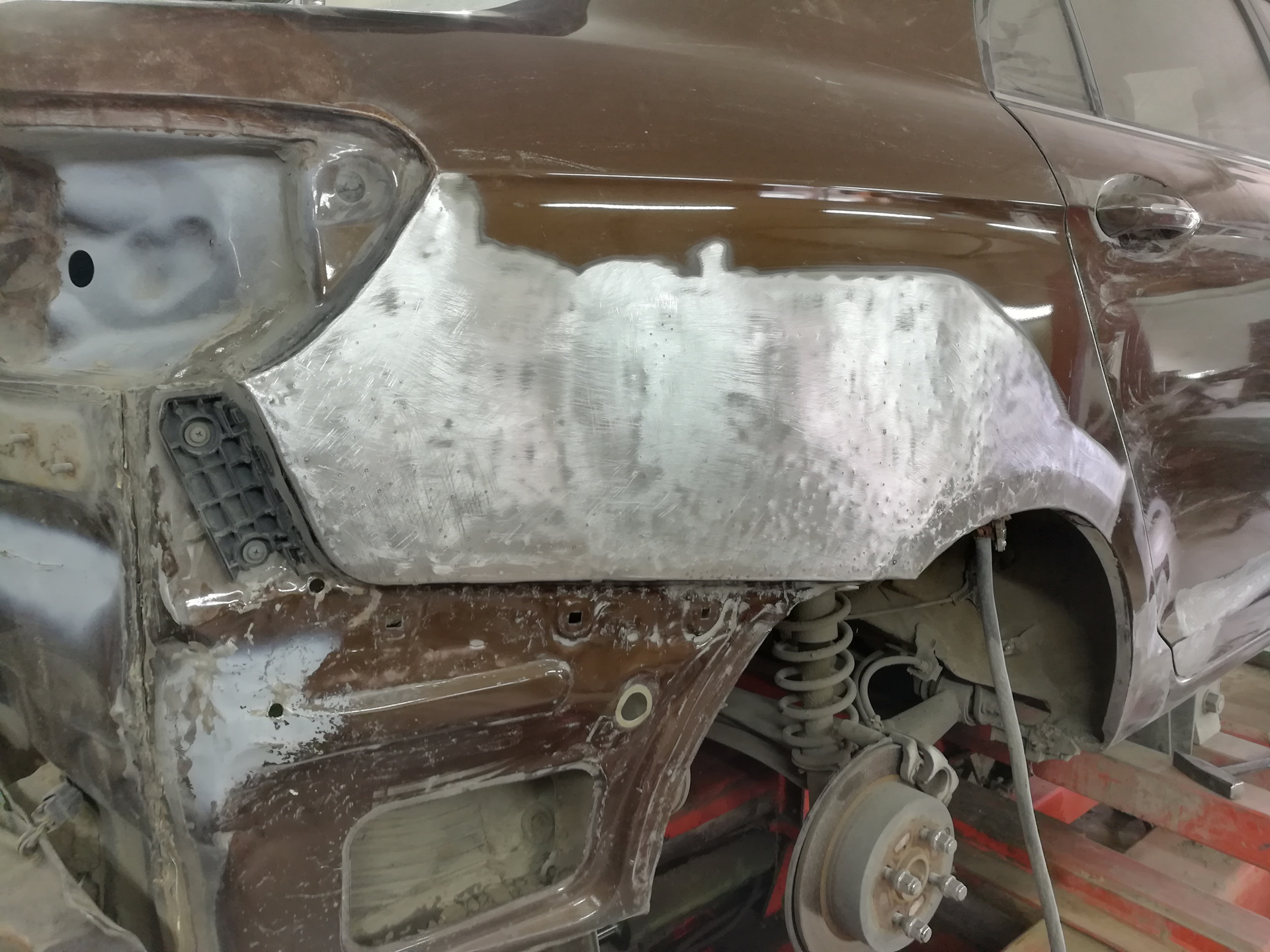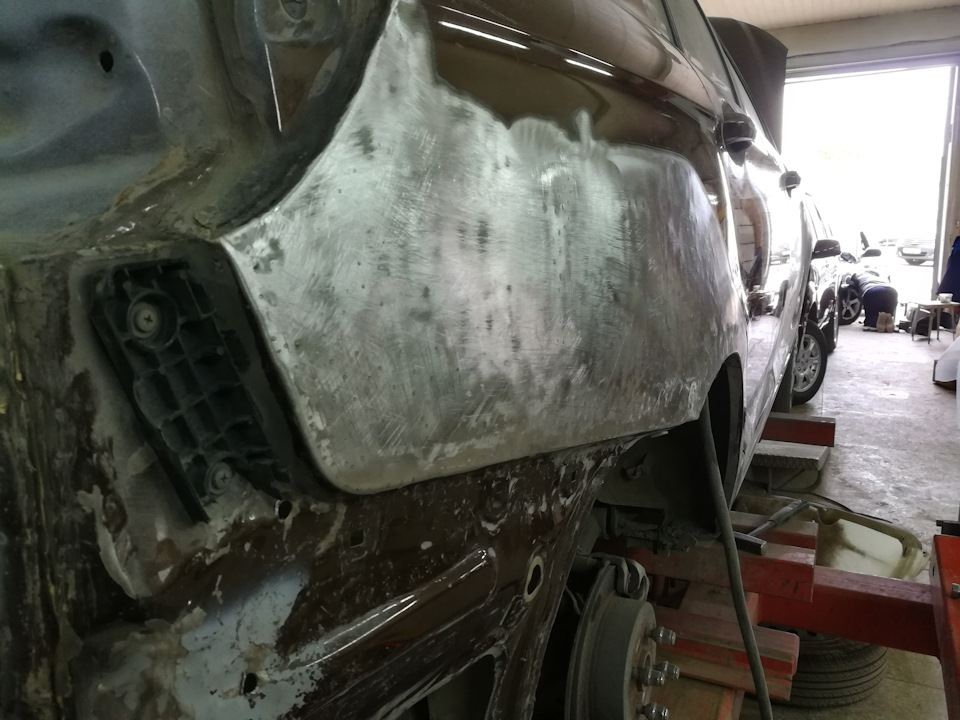 Так вроде бы всё, правый борт отрихтован полностью, и машину можно гнать в малярку…но нет.