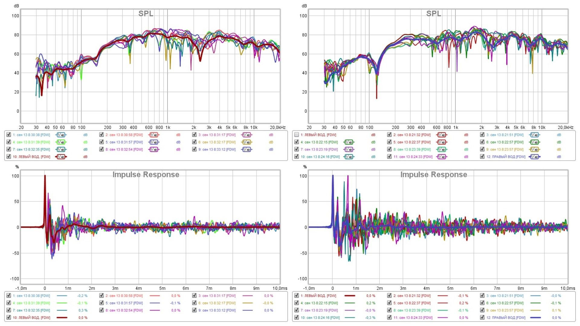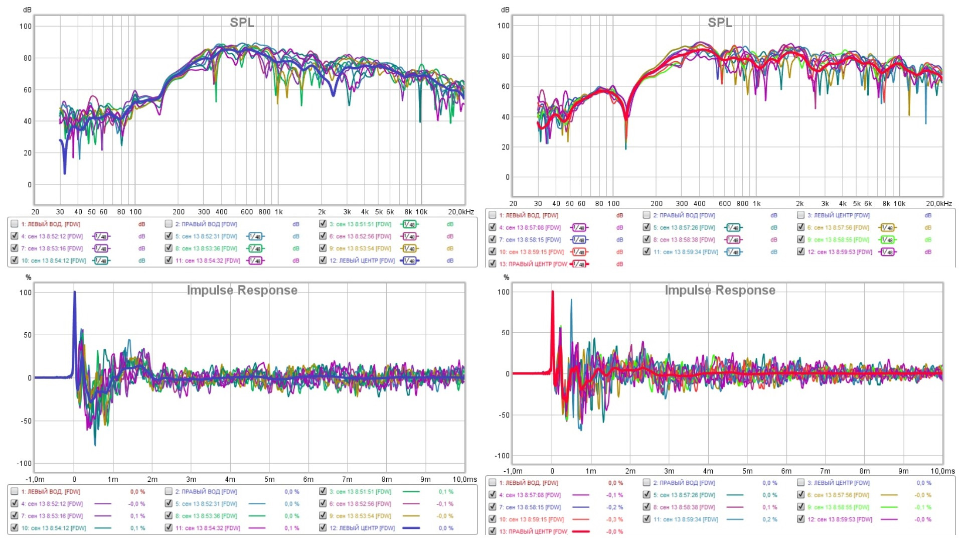 Для начала немного про методику измерений. Я использую программу REW как наиболее удобную на мой взгляд и довольно точную в плане повторяемости. Микрофон у меня UMIK калиброванный по оси и на 90гр. Два отдельных файла коррекции, так что всё честно.
