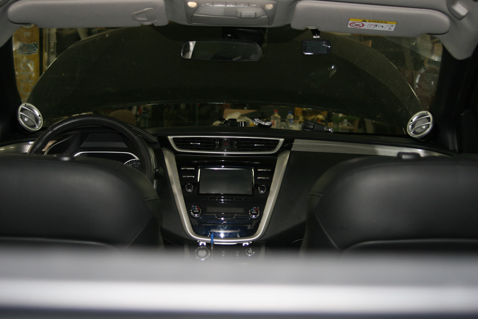 Не так сильно отворачивал, правый чуть за голову водителя… примерно в правый край подголовника. Получилось примерно 5-10 градусов оба от оси.