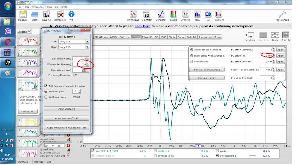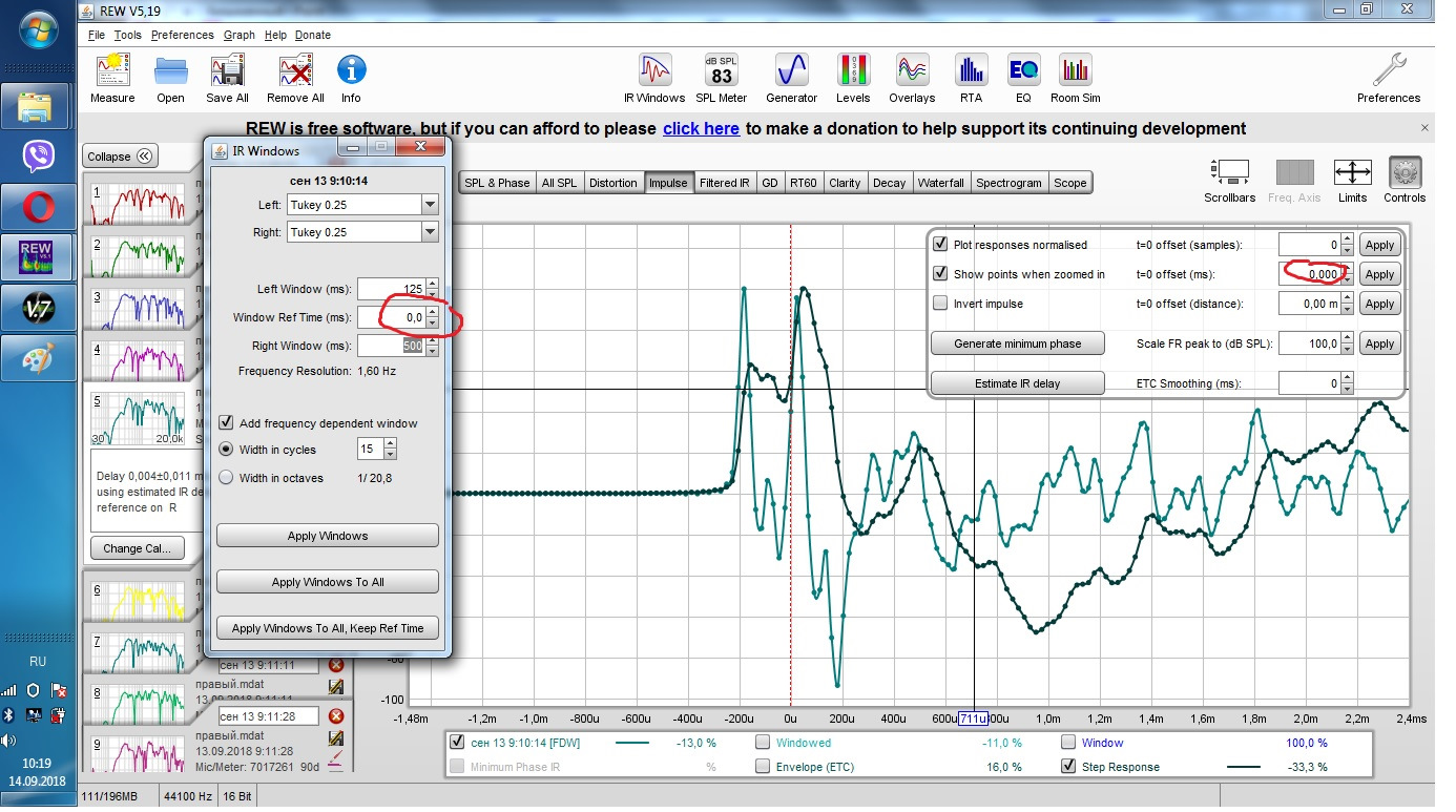 В окошке Analyses в REW, выбрано "Use loopback as tming referens".